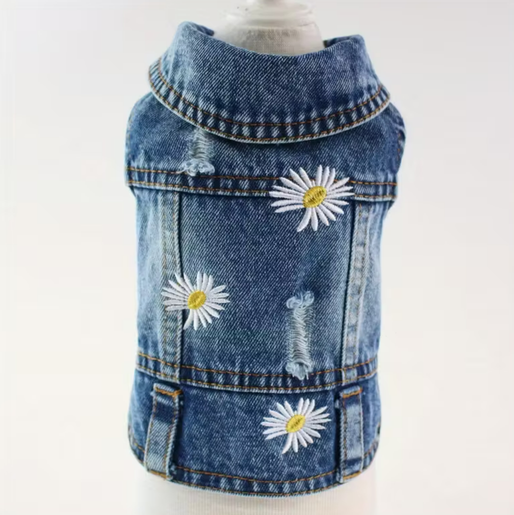 Propínací Džínová Mikina / Vesta pro psa Bavlna Jeans Clothing Flowers Cotton tmavě modrá 100% bavlna 496,00 Kč 0,00 Kč