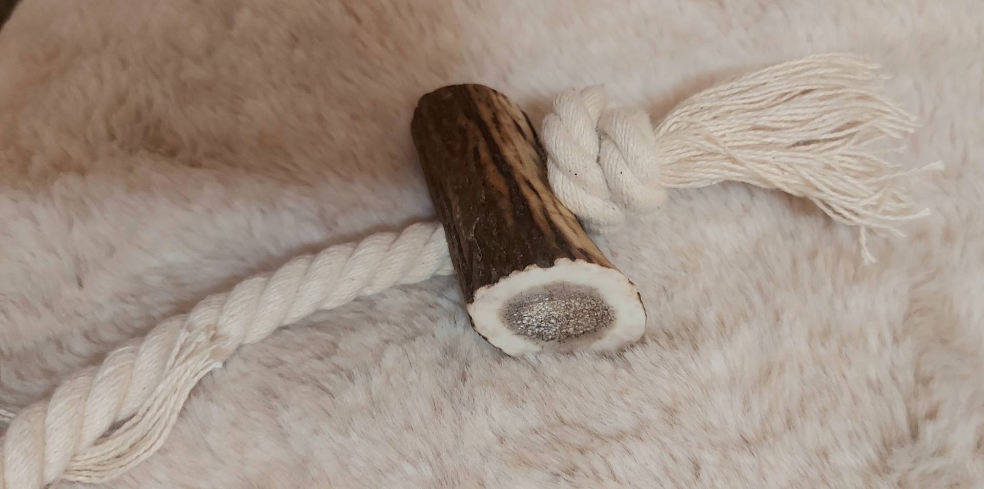Jelení paroží na bavlněném laně je vhodná pomůcka i pro citlivé psy nebo psy se sklonem k alergiím