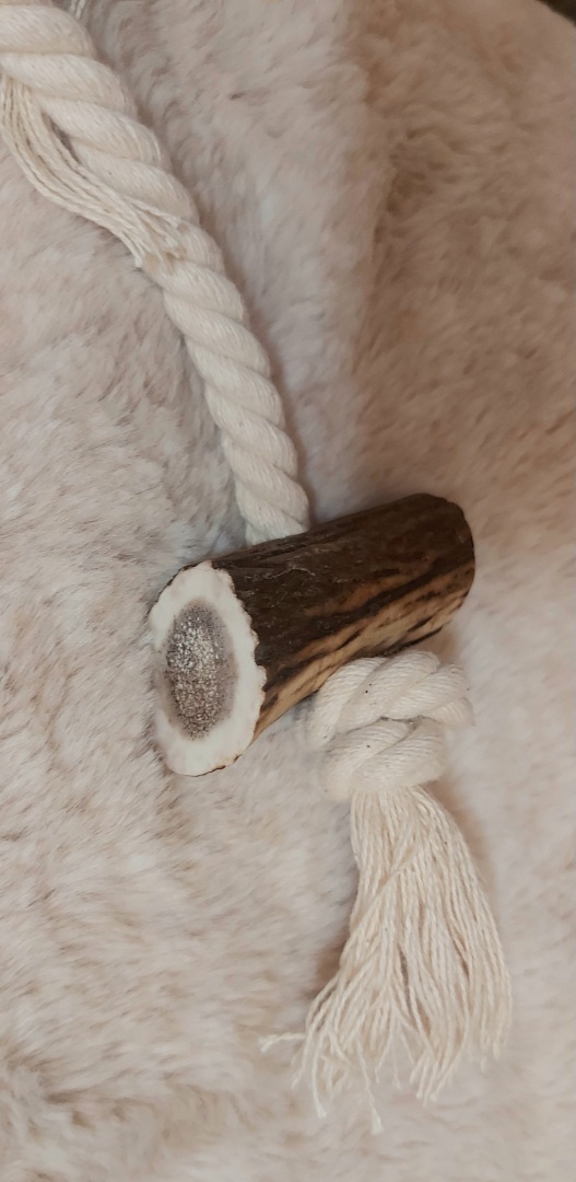 Velikost: délka 40 cm, váha paroží 50 – 60g, šířka bavlněného lana 1 cm