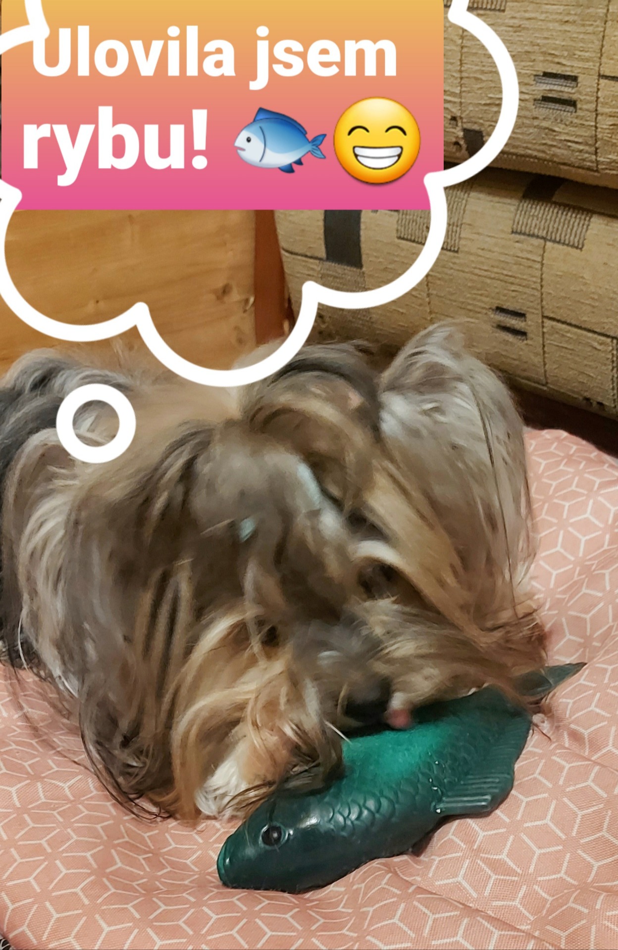 Hračka má dokonalý vzhled živého kapra a zaujme každého zvídavého pejska