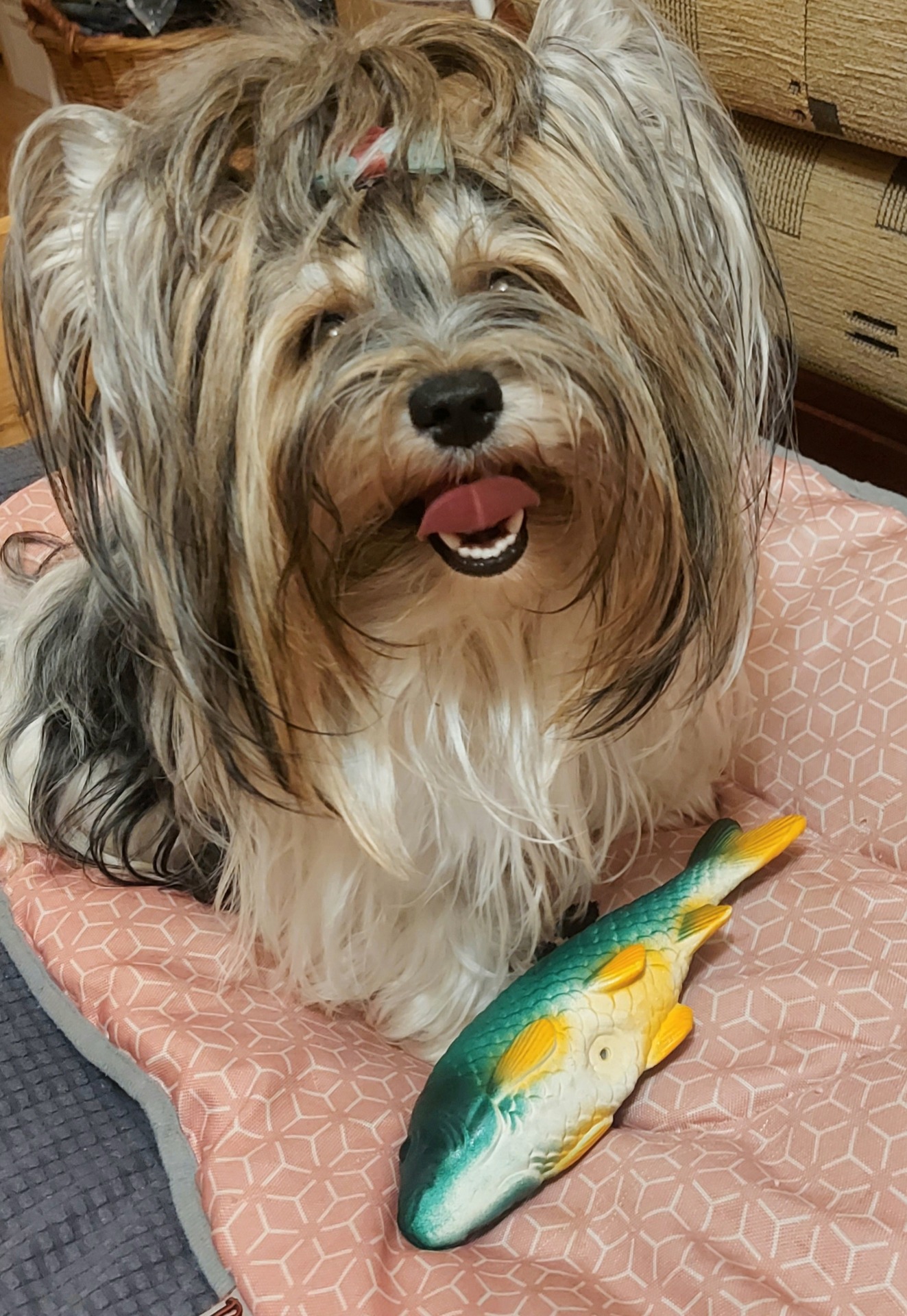 Moje zkušenost: S touto hračkou si naše dvě holky jorkšírky rády hrají, píská a vždy je vyprovokuje k aportování a běhání doma i venku, snadno se jim kapřík přenáší v zubech, mají pocit, že "ulovily" opravdového kapra :)