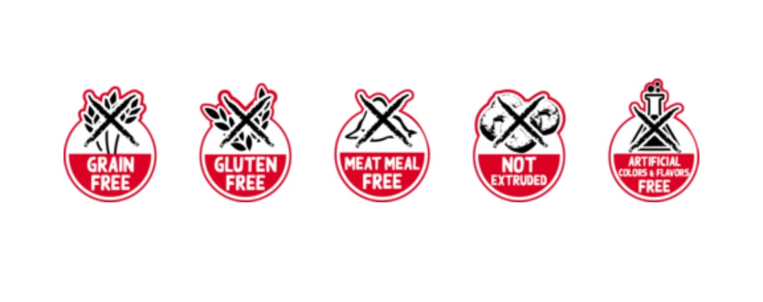 35% čerstvá kachna, 20% čerstvé kuře, 20% čerstvé celé ryby, 10% vepřová játra, hydrolyzovaný škrob, rostlinný glycerin