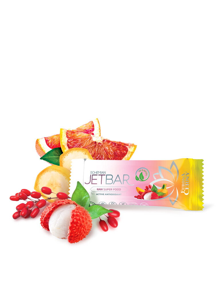 Datle, banán 15%, kustovnice čínská (goji) 10%, kešu, liči lyofilizované 4%, extrakt z červených pomerančů (Citrus sinensis L. Osbeck), extrakt z opuncie (Opuntia ficus indica (L.)), extrakt z červených hroznů révy vinné (Vitis Vinifera L.), kyselina L-askorbová (vitamín C), glukonát zinečnatý (zinek), síran manganatý monohydrát (mangan)