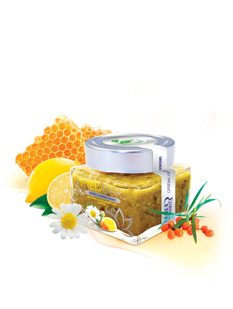 Med květový 78 %, heřmánek květ 8,6 %, rakytníková šťáva 8,6 %, rakytník plod 4,3 %, citronová silice