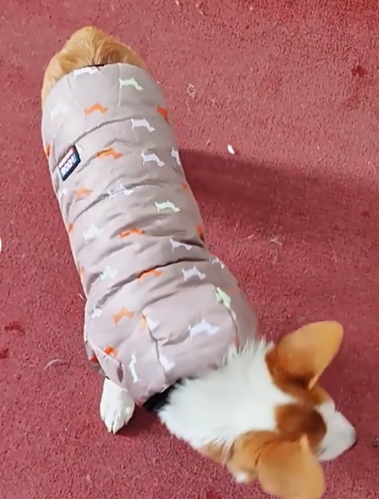 - kryje přední nohy psa