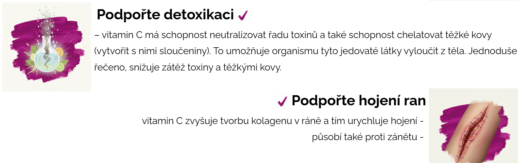 vitamin C zvyšuje tvorbu kolagenu v ráně a tím urychluje hojení -