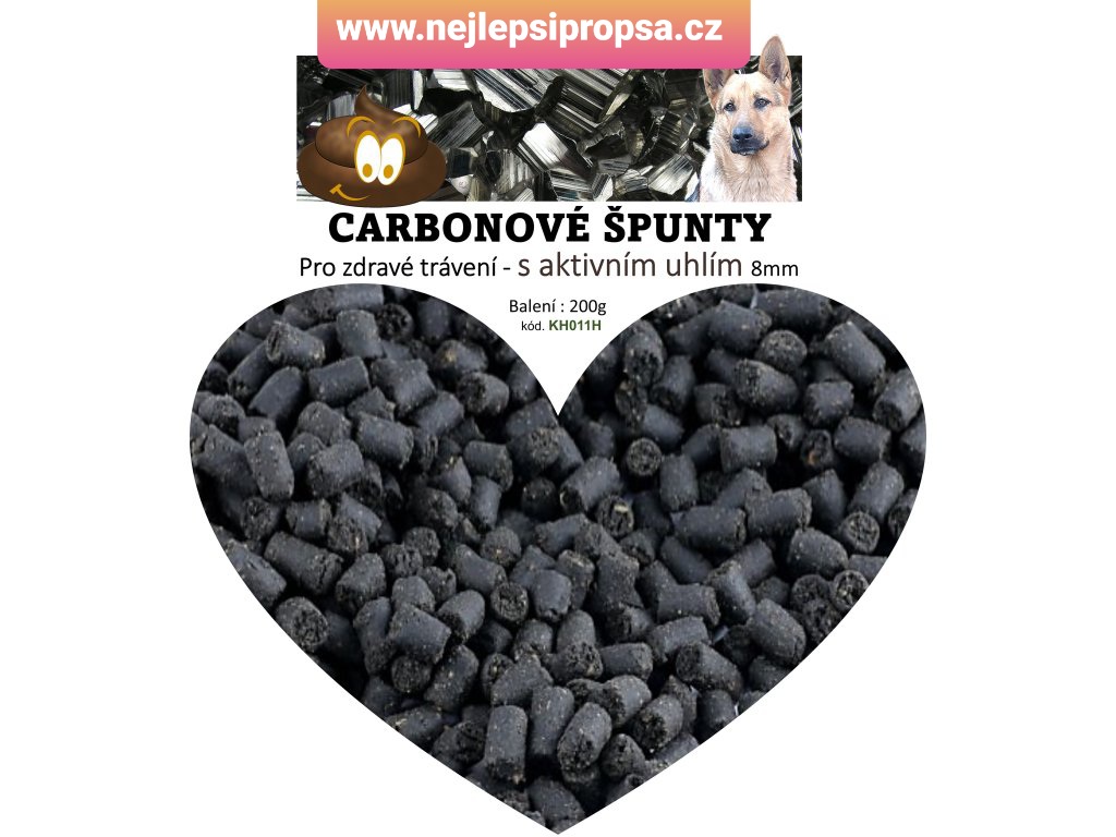 Carbonové špunty jsou účelovým doplňkem výživy pro psy s obsahem Aktivního černého Biouhlí, které má samo o sobě vysokou účinnost při tlumení chronických i akutních průjmů, plynatosti, kvasných procesů ve střevech i u lehkých otrav