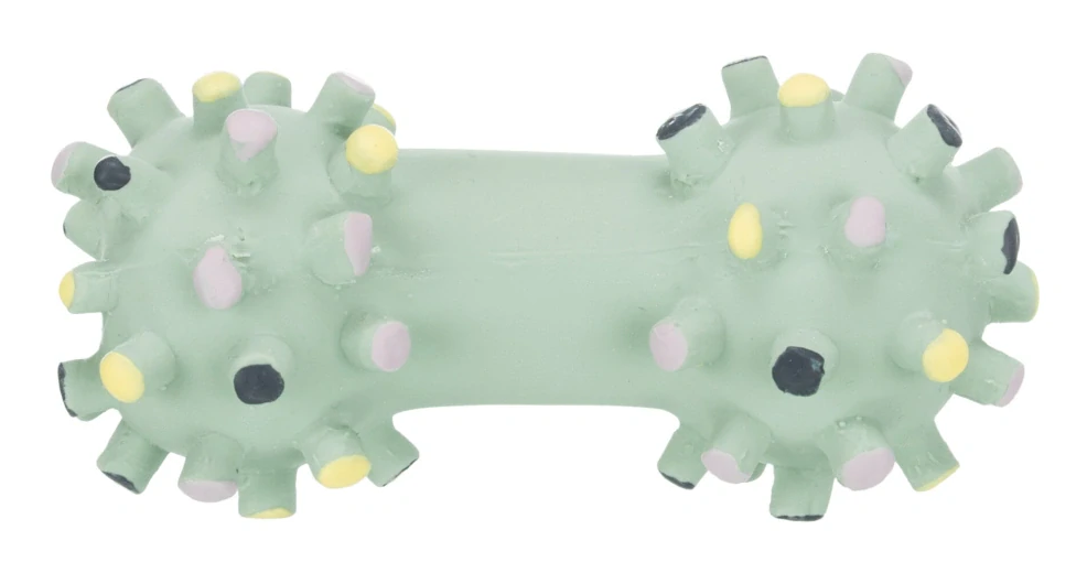 Hračka ve tvaru činky s masážními výstupky je vyrobena z PŘÍRODNÍHO LATEXU, který je pro psa zdravotně nezávadný, netoxický, odolný a bezpečný, je ideální hračkou pro psy a štěňata malých plemen
