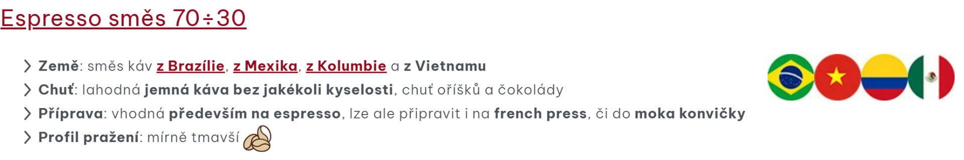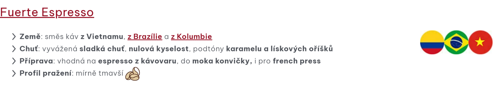 - Země: směs káv z Vietnamu, z Brazílie a z Kolumbie