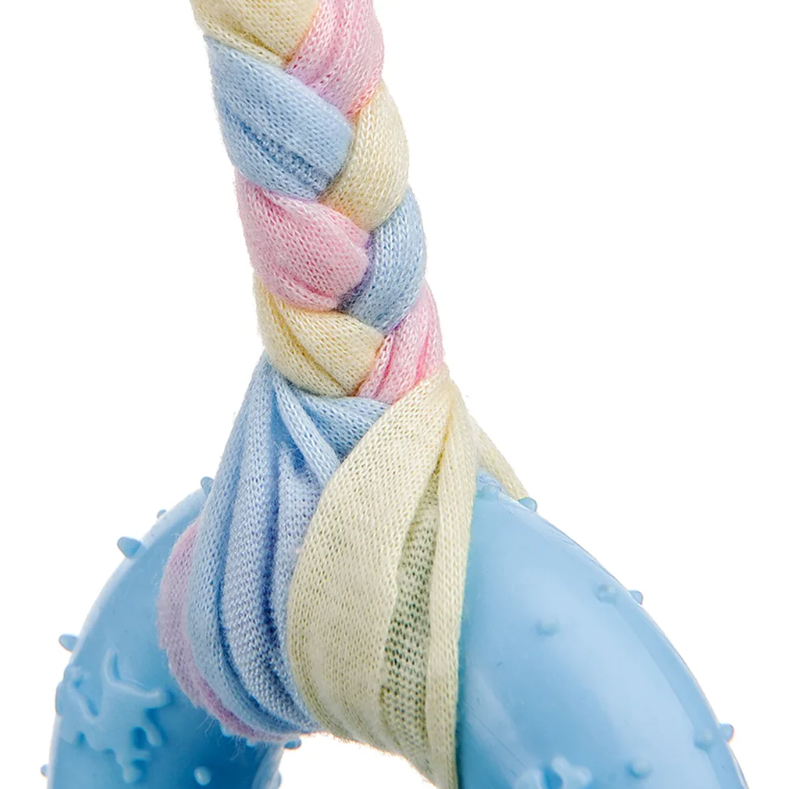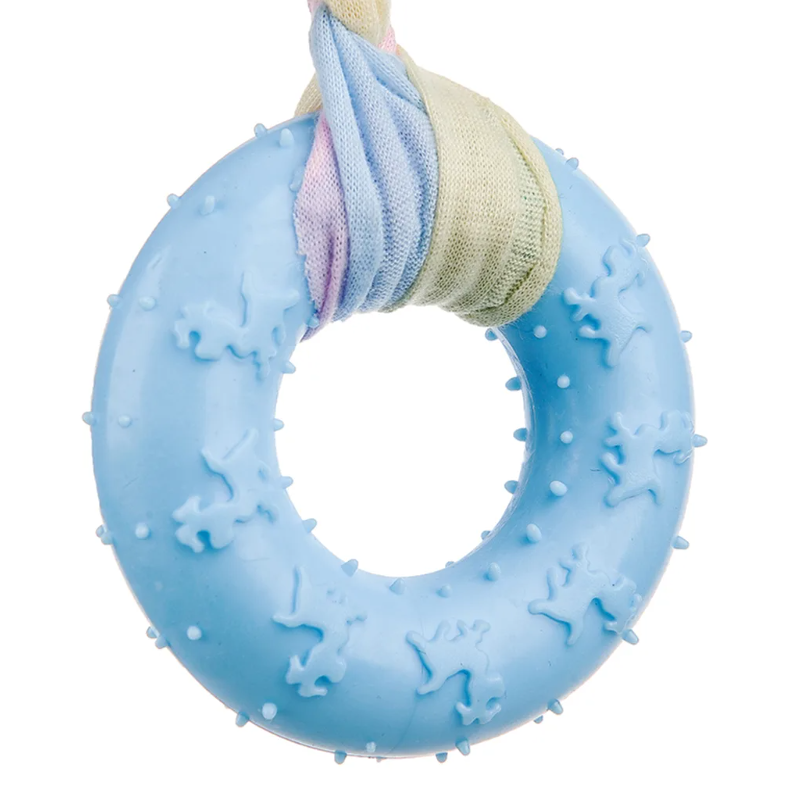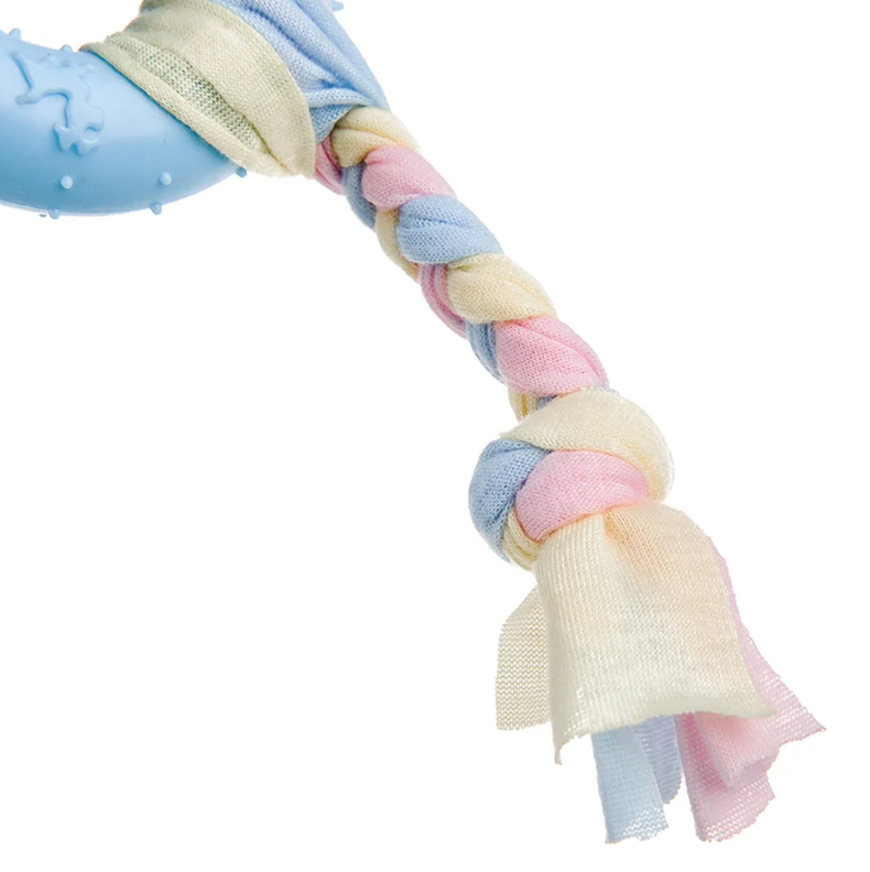 Materiál: kroužek TPR zdravotně nezávadná termoplastická guma, zapletené lano 60% bavlna, 40% polyester