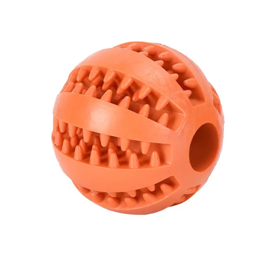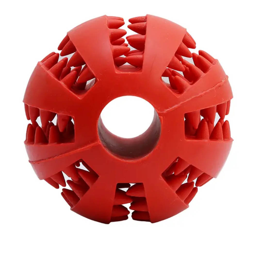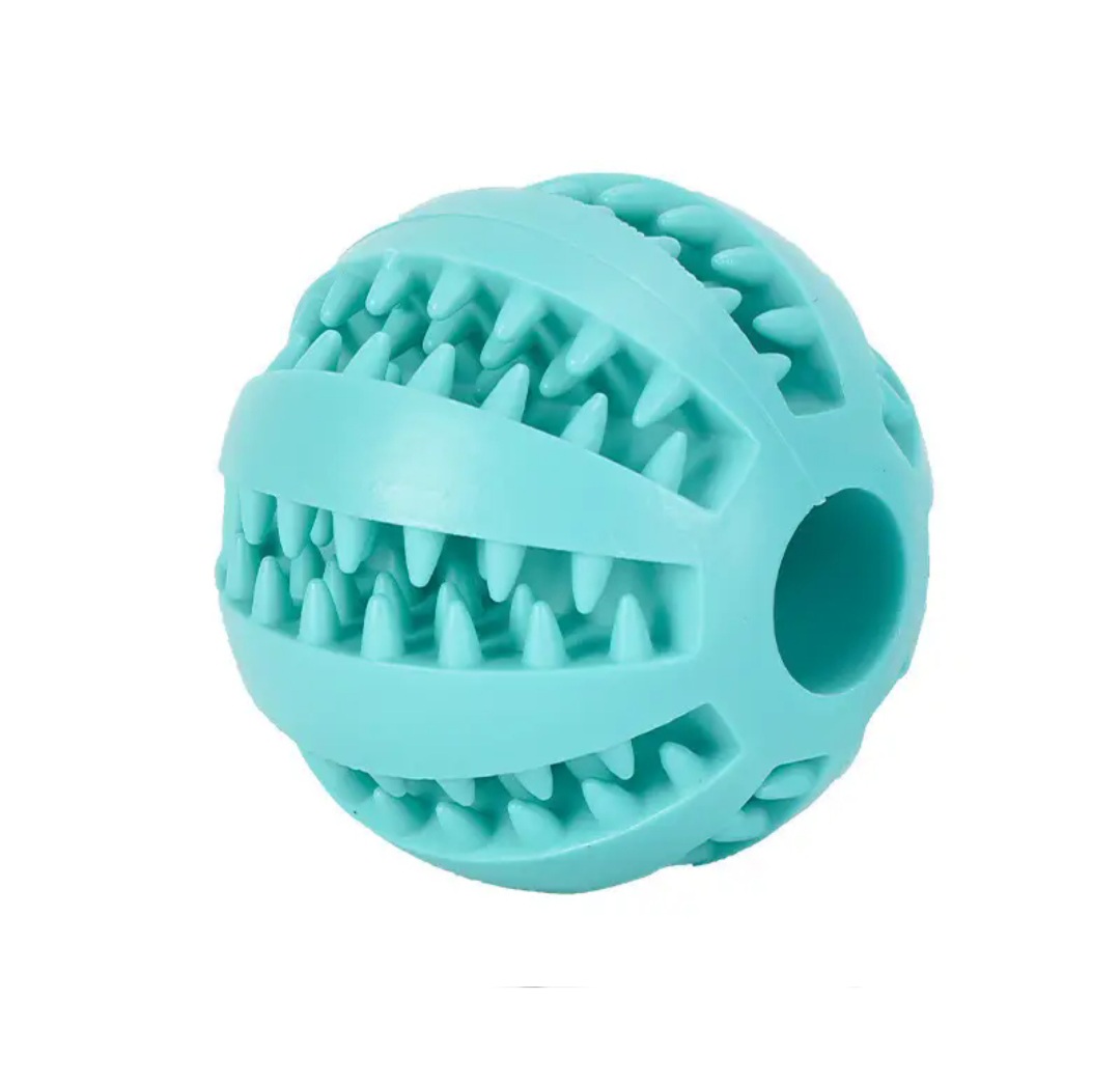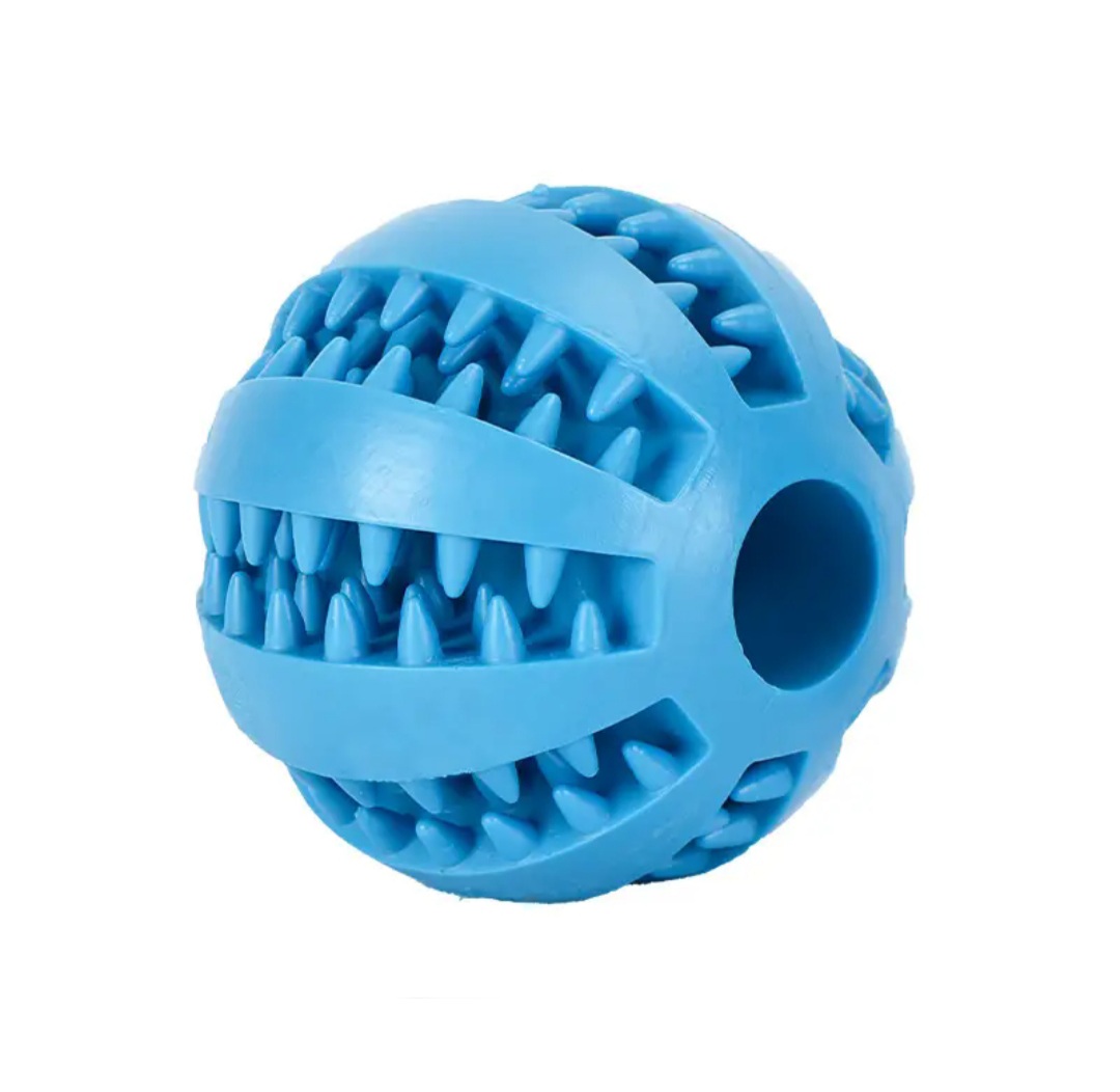 Díky speciálně navrženým výstupkům se míček stává přirozeným zubním kartáčkem. Čistí zuby i prostor mezi nimi při hraní – zabraňuje tak zubnímu kameni a zároveň masíruje dásně