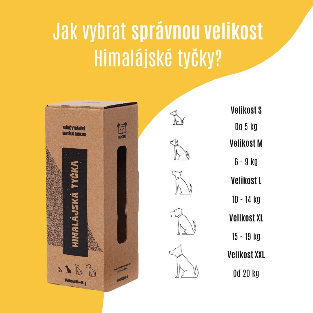 Pro maximální radost z Himalájské tyčky a bezpečné žvýkání vybírejte velikost tyčky podle váhy Vašeho psa (najdete v galerii produktu). Stejně jako u každého pamlsku či hračky doporučujeme psa při žvýkání sledovat. Pokud by pejsek tyčku kousal příliš rychle a "na sílu", tyčku odeberte a vraťte za chvíli