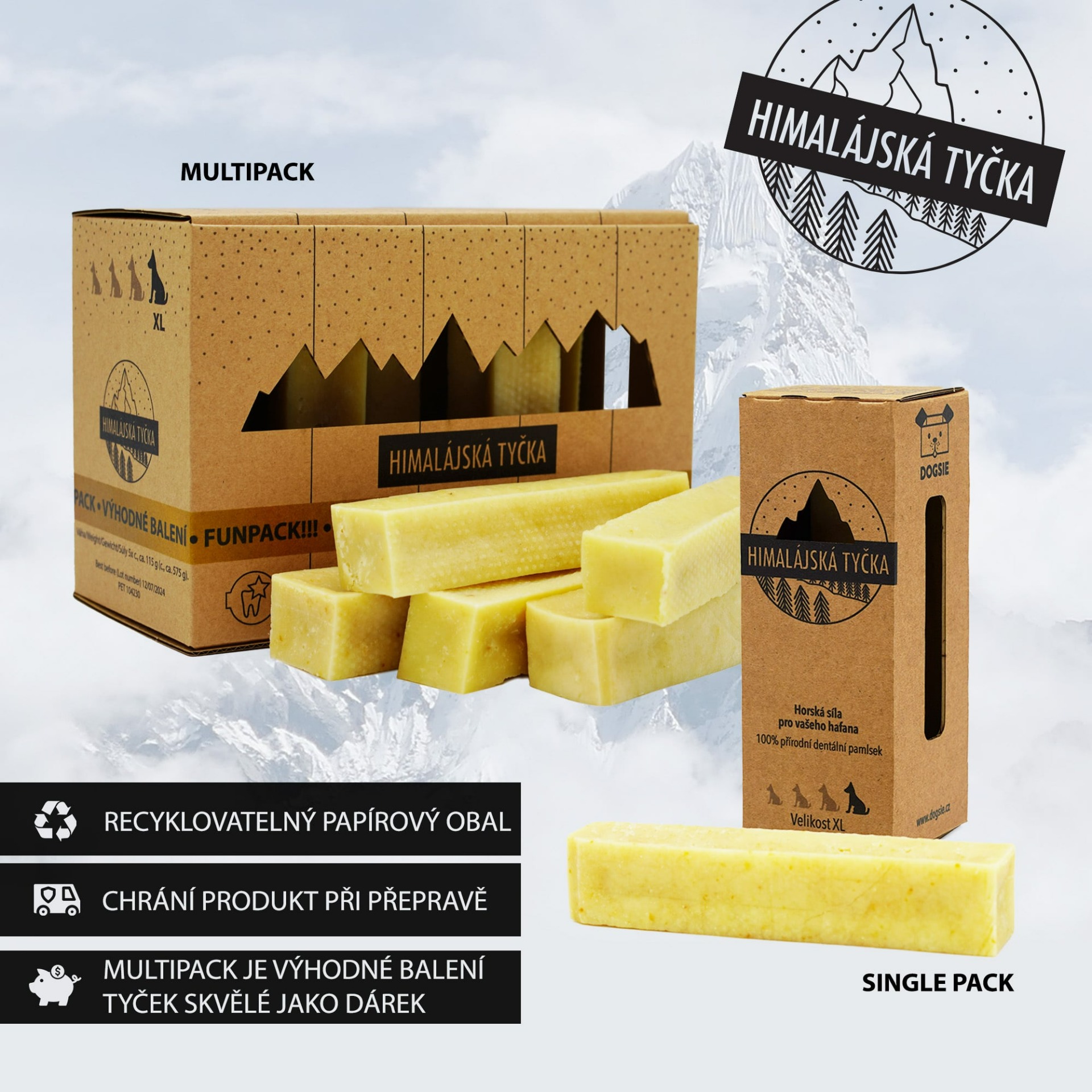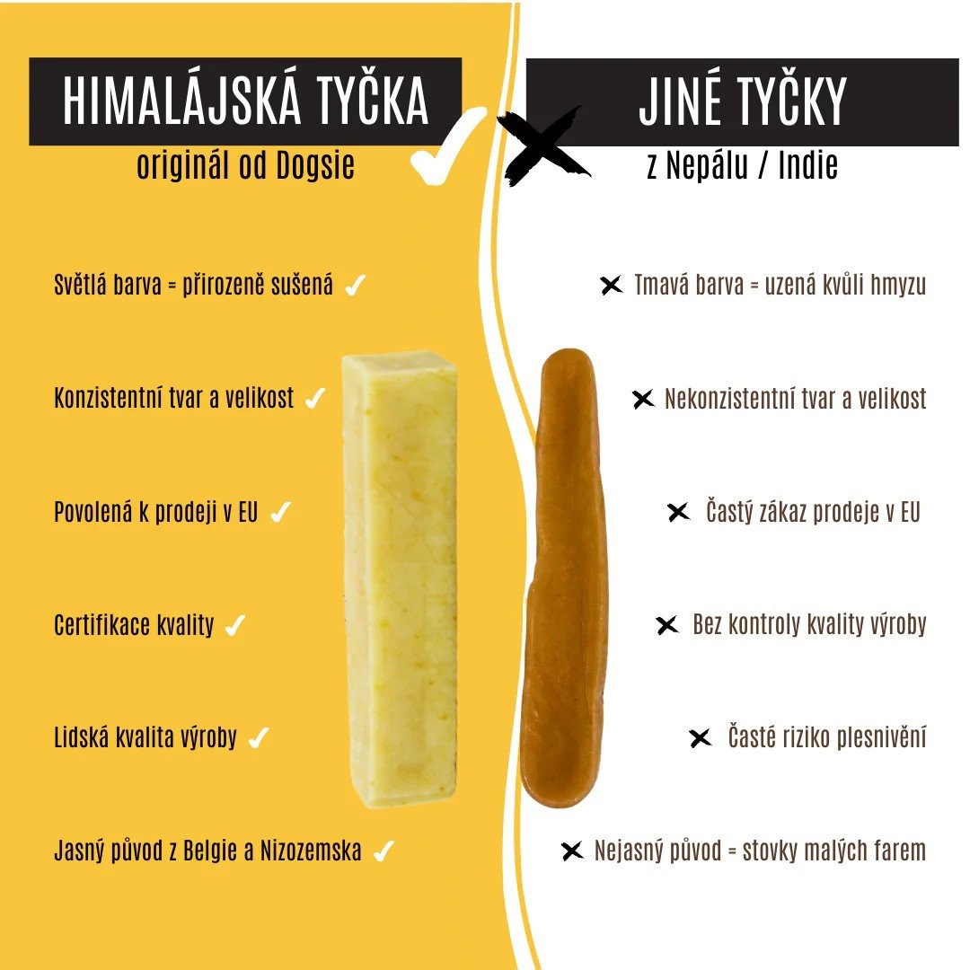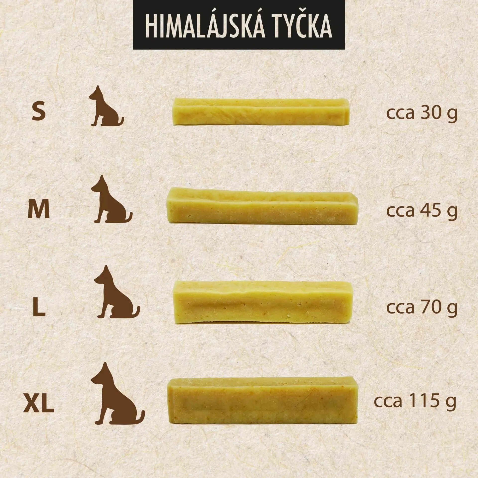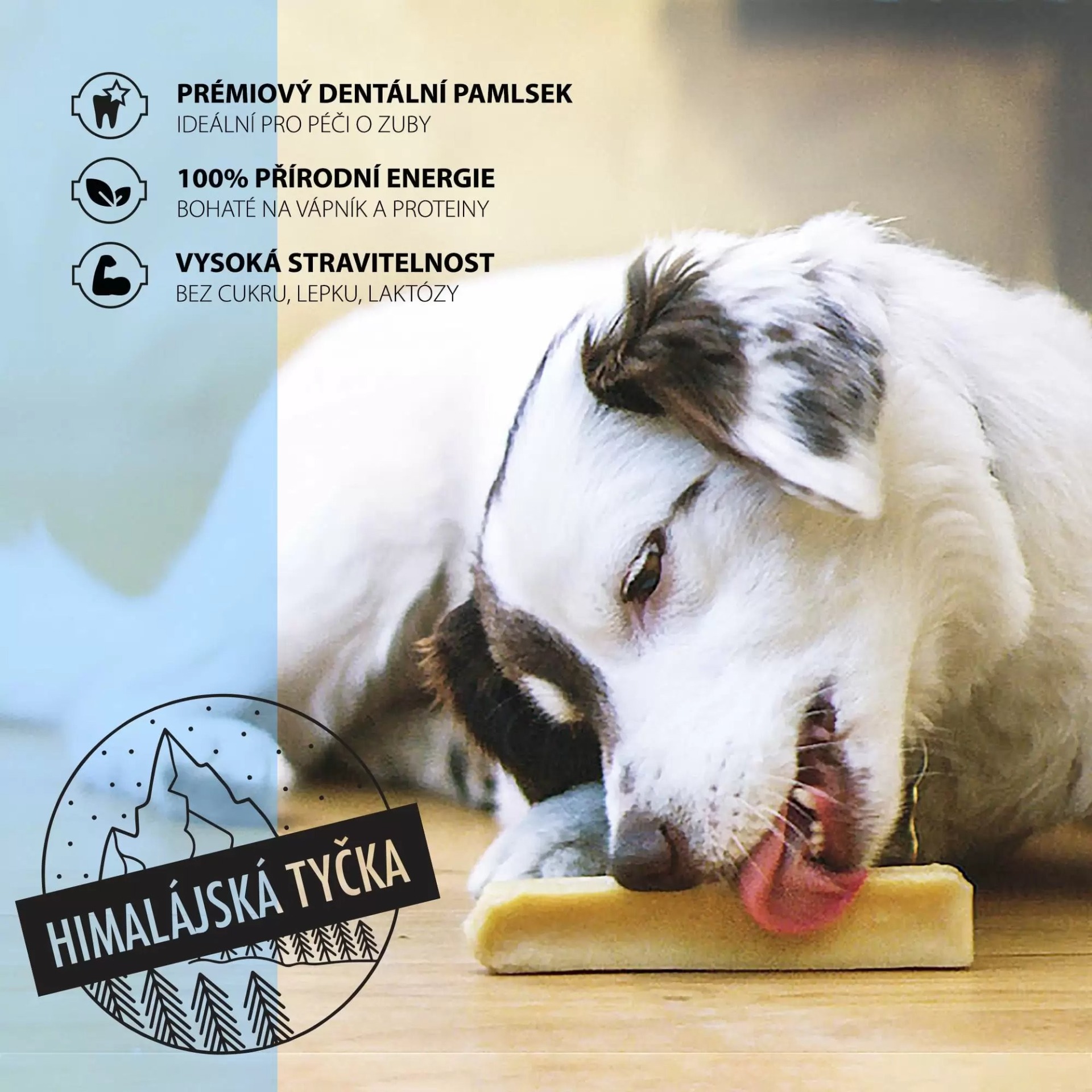 Himalájská tyčka je 100% přírodní dentální pamlsek inspirovaný tradiční himalájskou recepturou. Vyrábí se z kvalitního belgického mléka od kraviček z pastvin a suší se po dobu až 3 měsíců, díky čemuž získává svoji tvrdost, odolnost a dlouhou trvanlivost