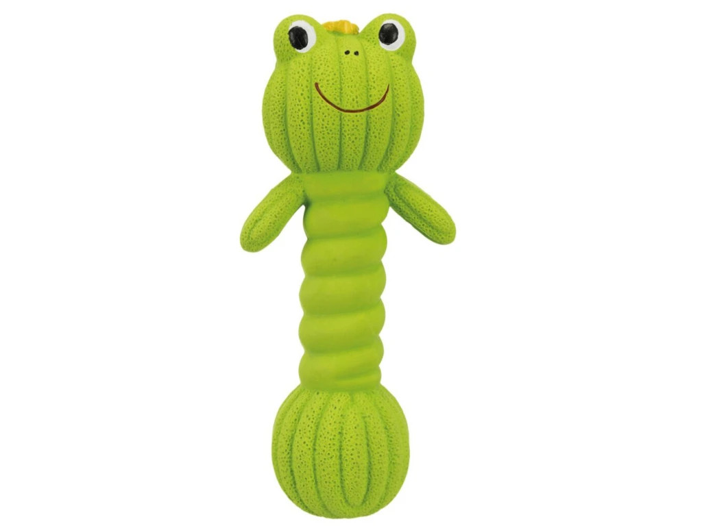 Hračka ve tvaru žabky je vyrobena z PŘÍRODNÍHO LATEXU, který je pro psa zdravotně nezávadný, odolný a bezpečný, je ideální hračkou pro psy a štěňata menších a středních plemen