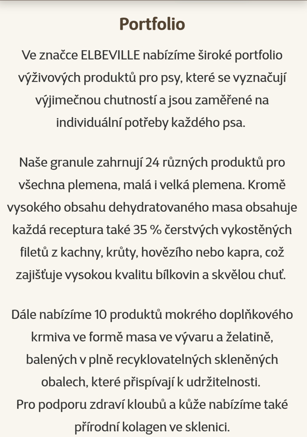 Krmivo ELBEVILLE je vyráběno v České republice z lokálních surovin. Obaly krmiv ELBEVILLE jsou plně recyklovatelné