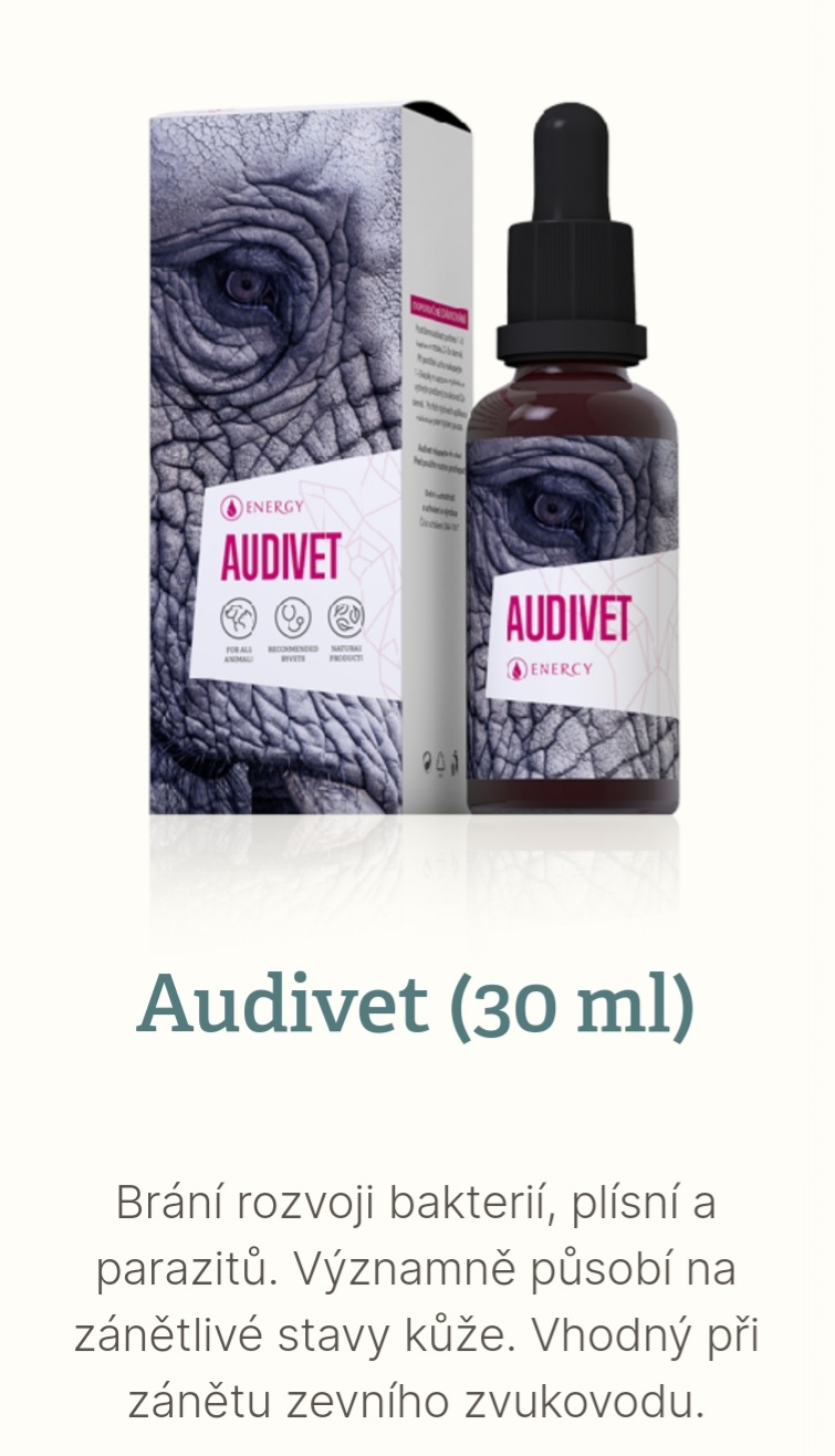 - Mykózy sliznic pohlavních orgánů – pro výplach je nutné Audivet zředit (pomocné preparáty Cytovet, Gynevet)