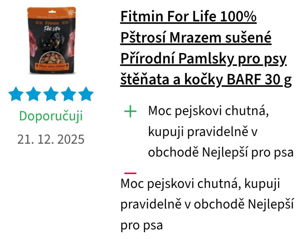 Slouží jako odměna při hře nebo výcviku, dávkujte dle vlastního uvážení