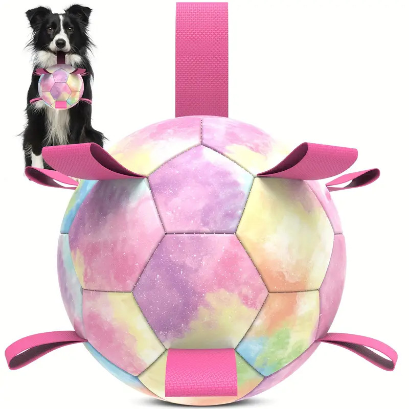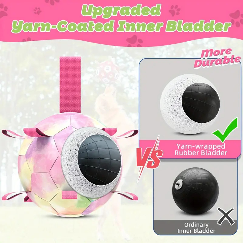 Fotbalový míč se všitým popruhem z něj dělá skvělou interaktivní hračku pro výcvik psů a veselé hry s Vaším mazlíčkem
