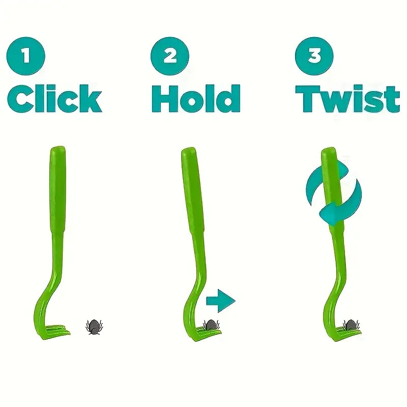 Podle velikosti klíštěte zvolte vhodný háček a vidlicí háčku nasuňte na přisáté klíště. Háček několikrát šroubovitě otočte proti směru hodinových ručiček, klíště se samo po dvou až třech otočkách uvolní
