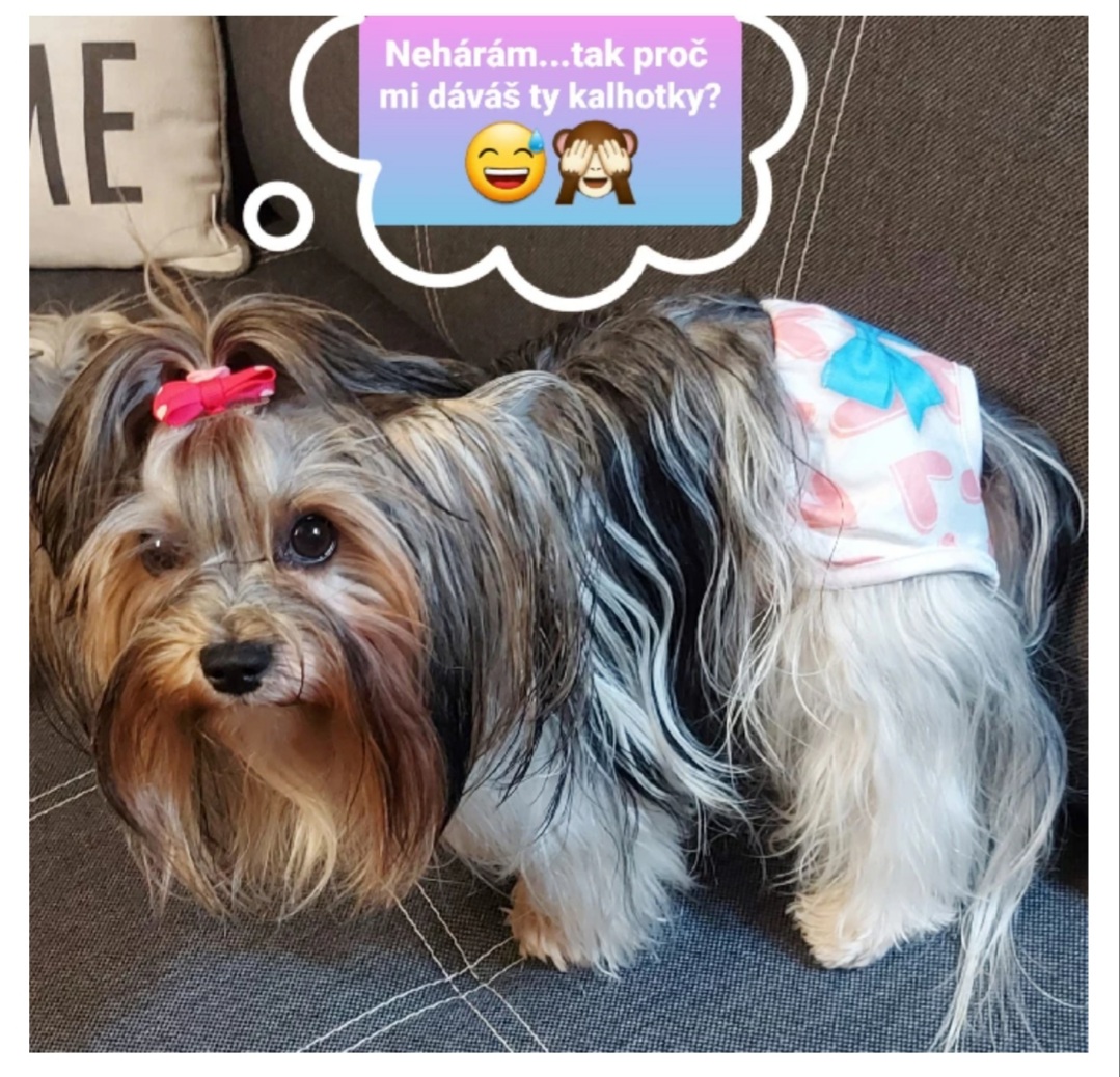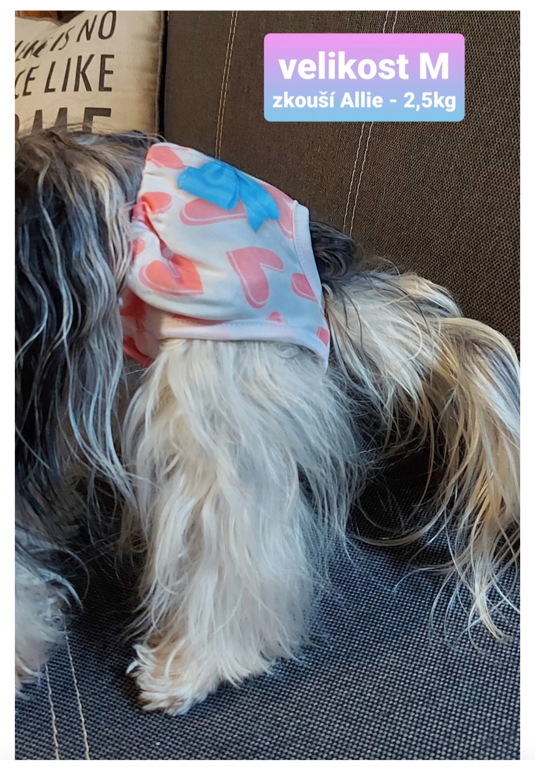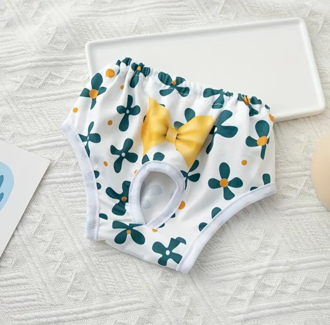 Hárací kalhotky pro psí slečny s motivem kytiček a žlutou mašlí