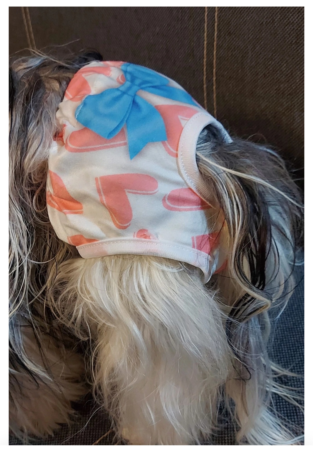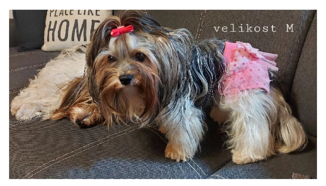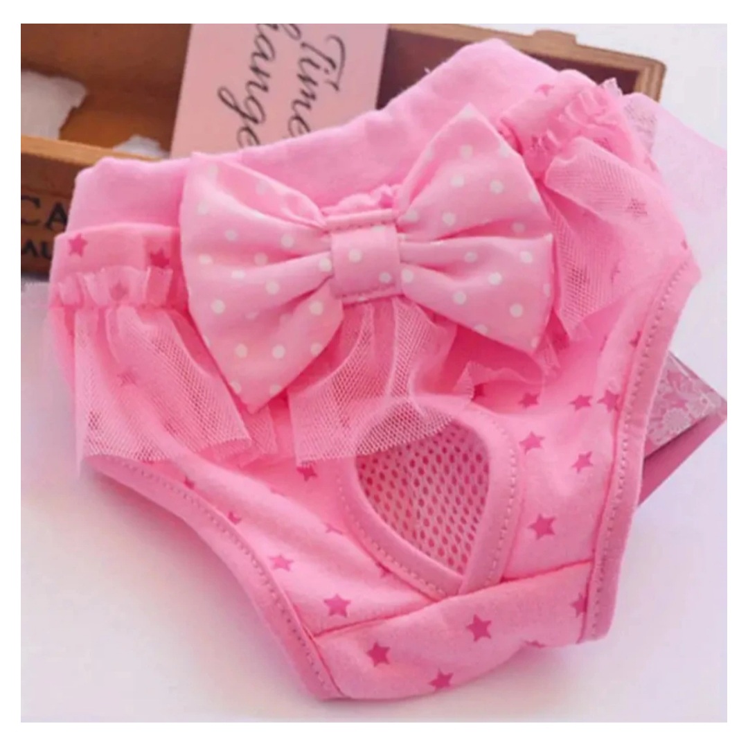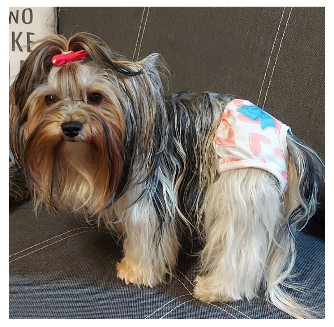 Hárací kalhotky pro psí slečny s motivem kytiček a žlutou mašlí