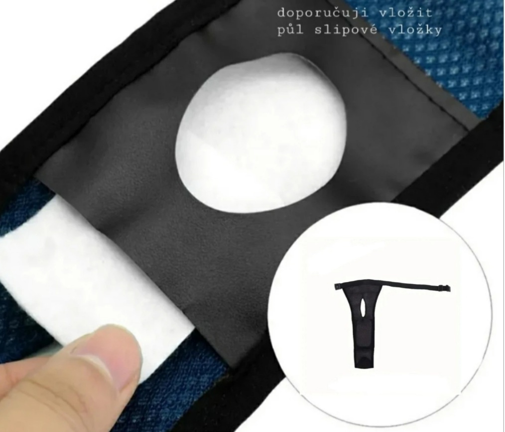 Dovnitř doporučuji nalepit vždy polovinu slipové vložky nebo možnost zakoupit vložky do háracích kalhotek Typ č. 1