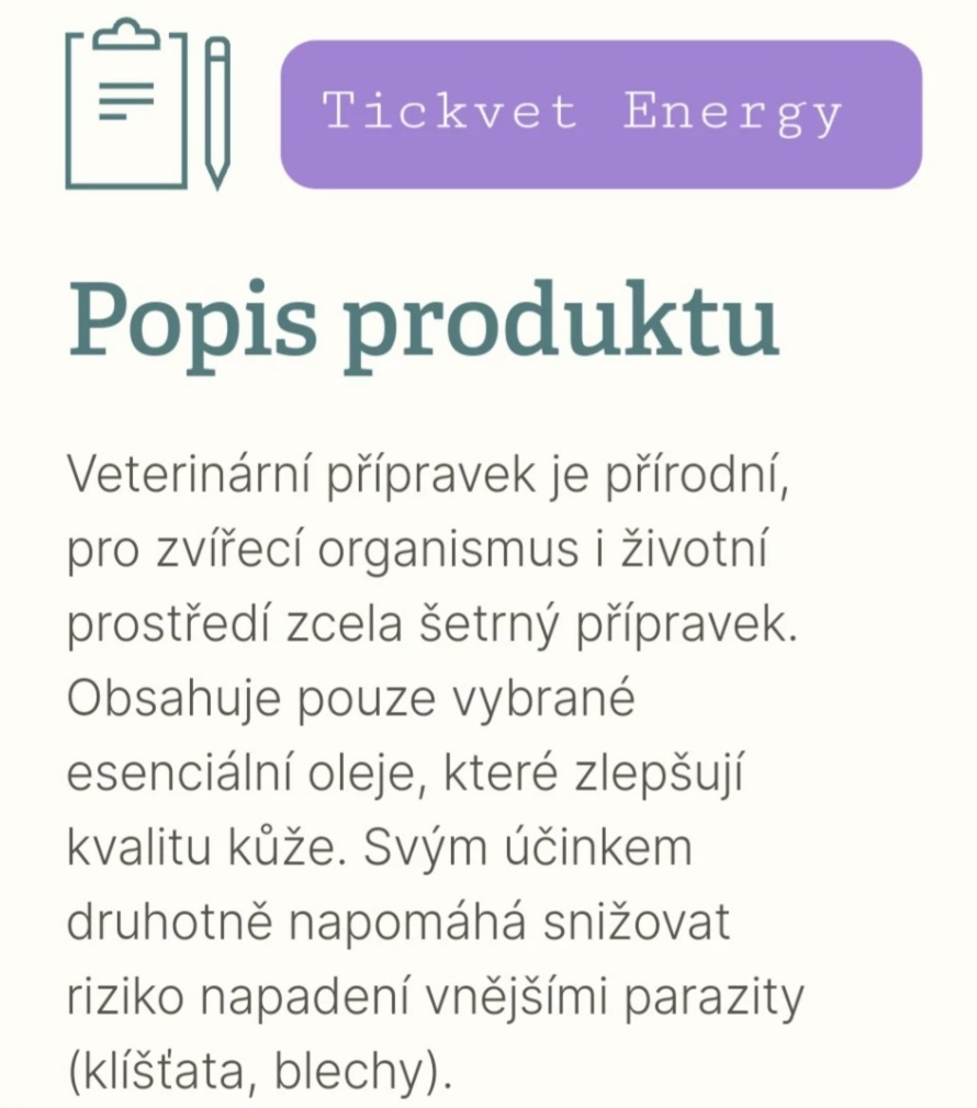 Bezpečný produkt, bez obav můžete pejska hladit, obsahuje pouze přírodní esence, které odpuzují parazity
