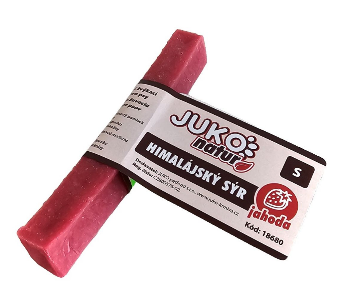 Odolný vysokoproteinový žvýkací pamlsek z kvalitního mléka s extra dlouhým procesem sušení s přidanou jahodou