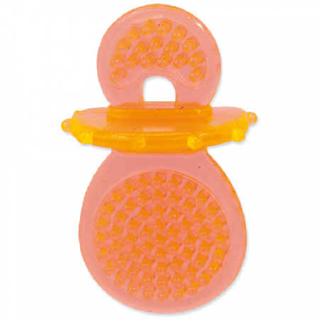 Dentální hračka ve tvaru dudlíku je vyrobena z PŘÍRODNÍHO LATEXU, který je pro psa zdravotně nezávadný, netoxický, odolný a bezpečný, je ideální hračkou pro psy a štěňata malých plemen