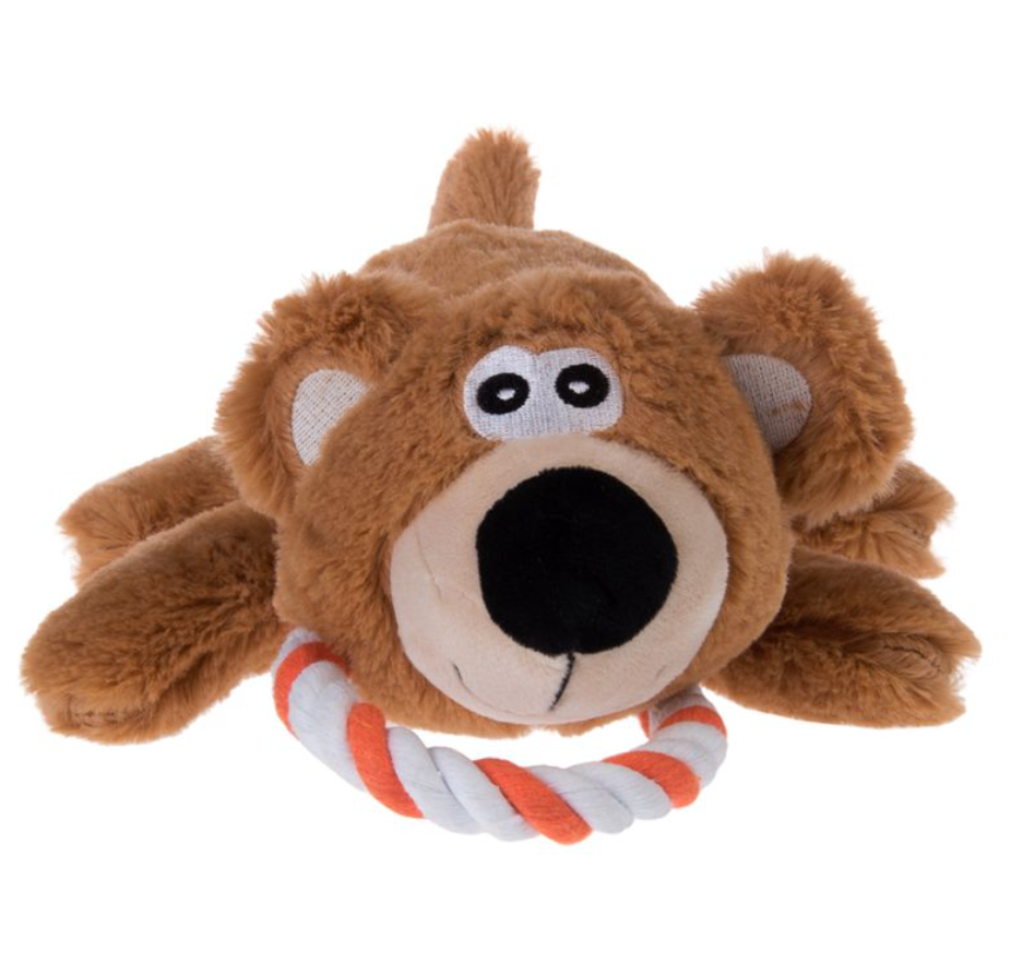Pískací a přetahovací hračka pro štěňata a psy ve tvaru hnědého medvídka potěší každého majitele, který chce pro svého mazlíčka kvalitní a odolnou hračku