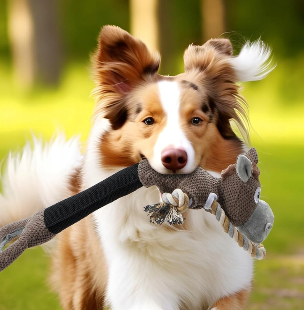 Seznamte se s Oslíkem – plyšovým kamarádem Vašeho psa, který píská, šustí, natahuje se a dá se tahat za břicho... a přesto se neurazí!