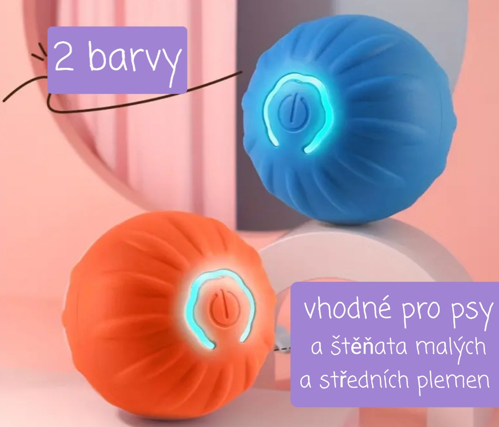 Míček při zmáčknutí tlačítka bliká, jezdí po podlaze, skáče a otáčí se