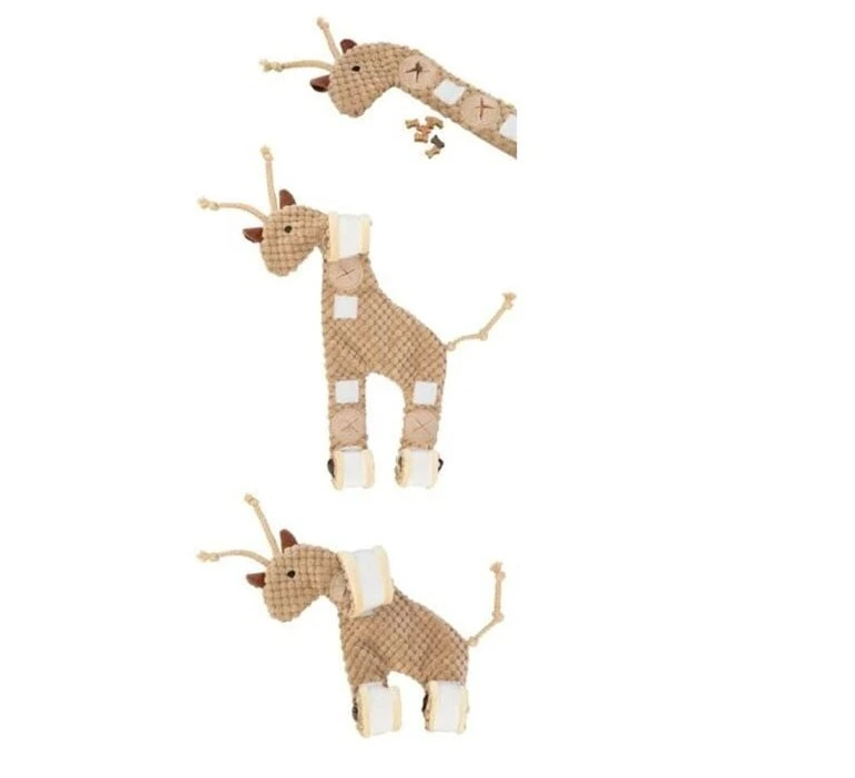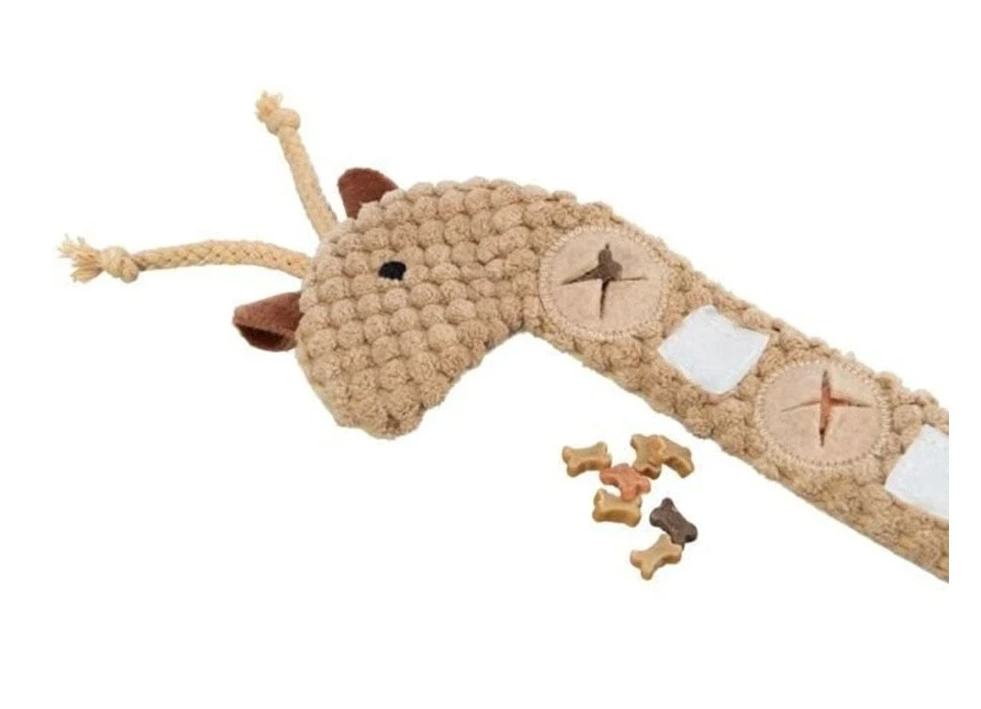 Tuto roztomilou plyšovou žirafu lze naplnit oblíbenými pamlsky a svinout, aby mazlíček musel použít své přirozené schopnosti a trochu si odměnu zasloužit