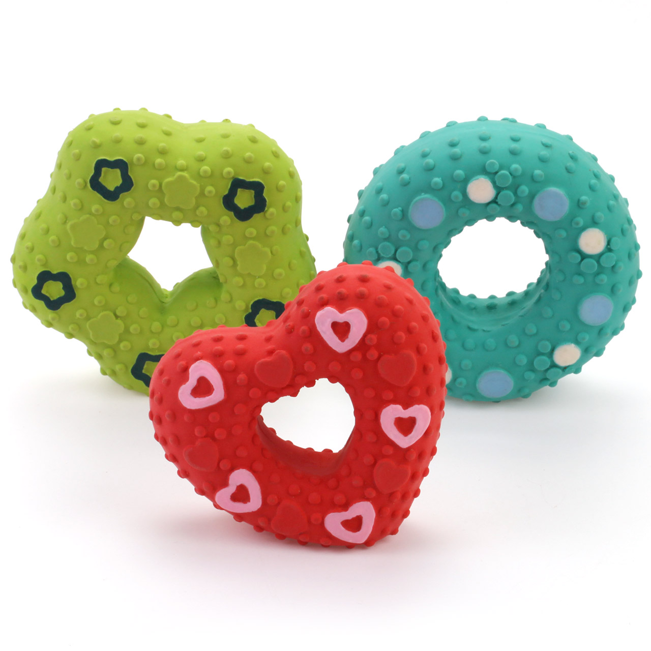 Hračka z PŘÍRODNÍHO LATEXU tvar donut nebo srdíčko je vhodná pro každého pejska, který miluje pískací zábavu