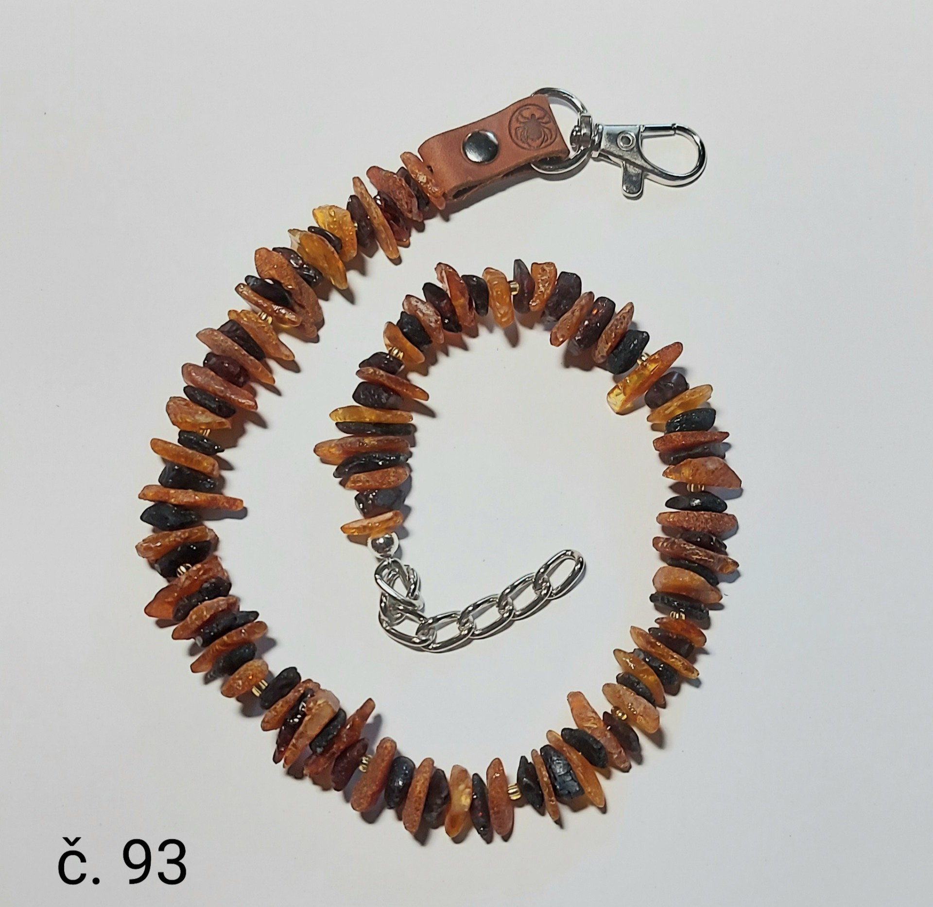 Materiál: přírodní minerál baltský jantar, přírodní kůže, nerezová karabina a řetízek