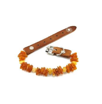 Obsah balení: 1 ks jantarový obojek s kůží, nerezovým řetízkem a nerezovou karabinou, český návod k použití