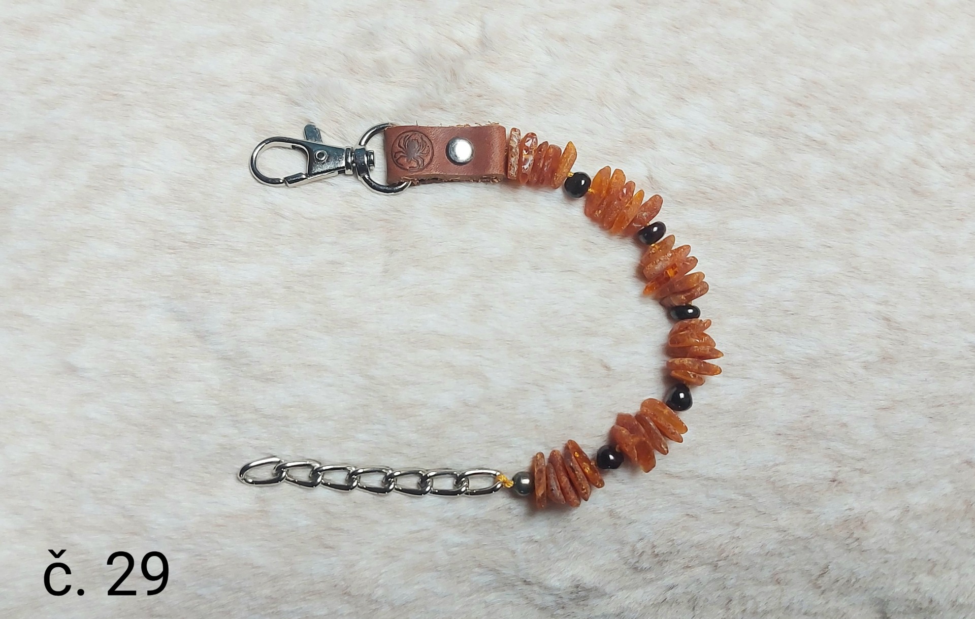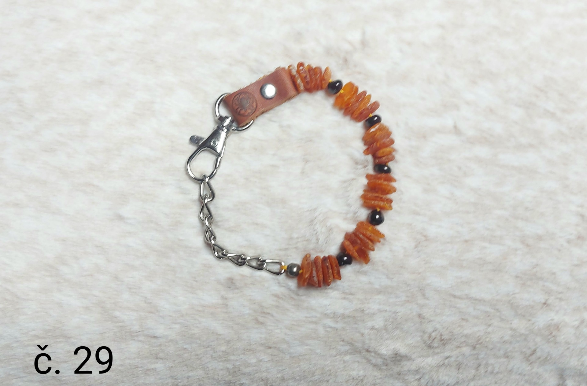 Materiál: přírodní minerál baltský jantar, přírodní kůže, nerezová karabina a řetízek