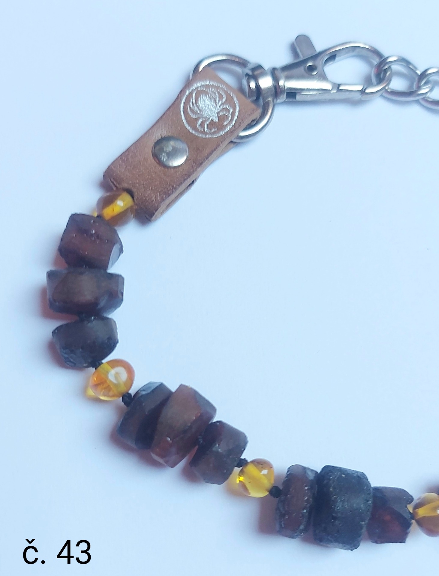 Materiál: přírodní minerál baltský jantar, přírodní kůže, nerezová karabina a řetízek