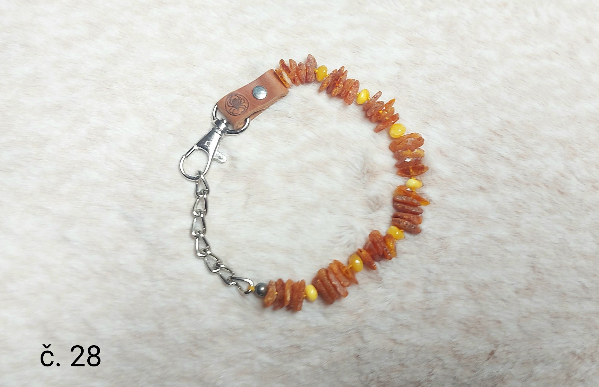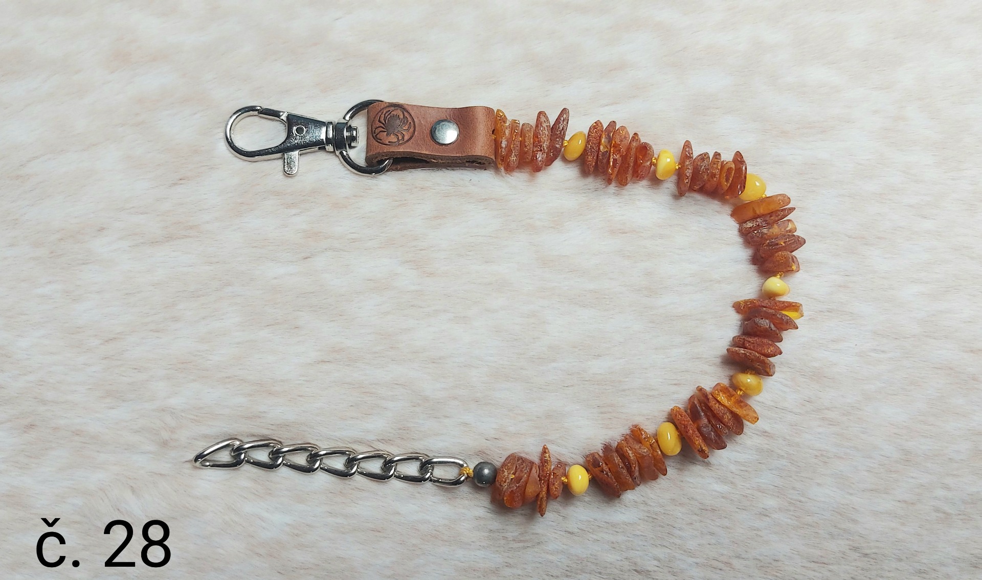 Materiál: přírodní minerál baltský jantar, přírodní kůže, nerezová karabina a řetízek