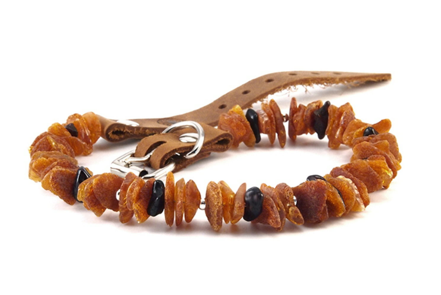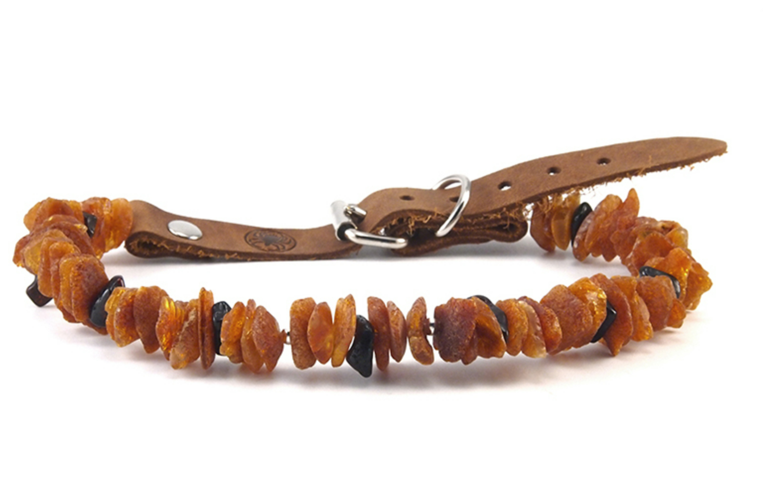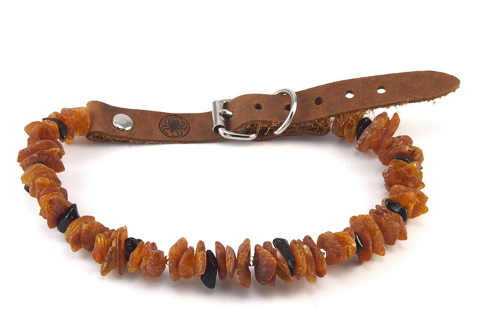Obojek s minerály baltský jantar s koženým páskem a nerezovou přezkou