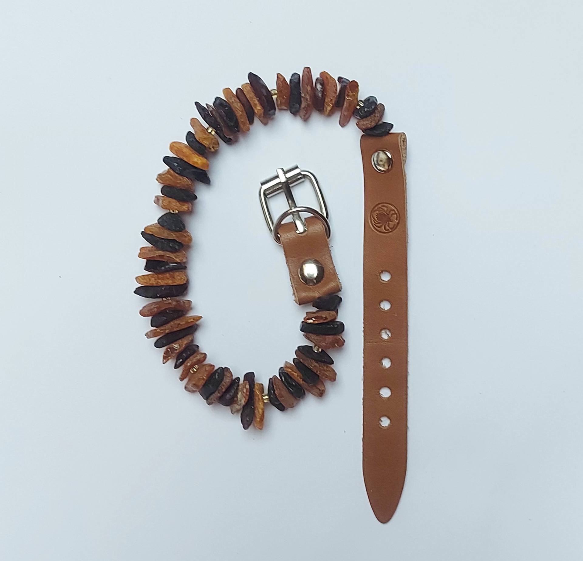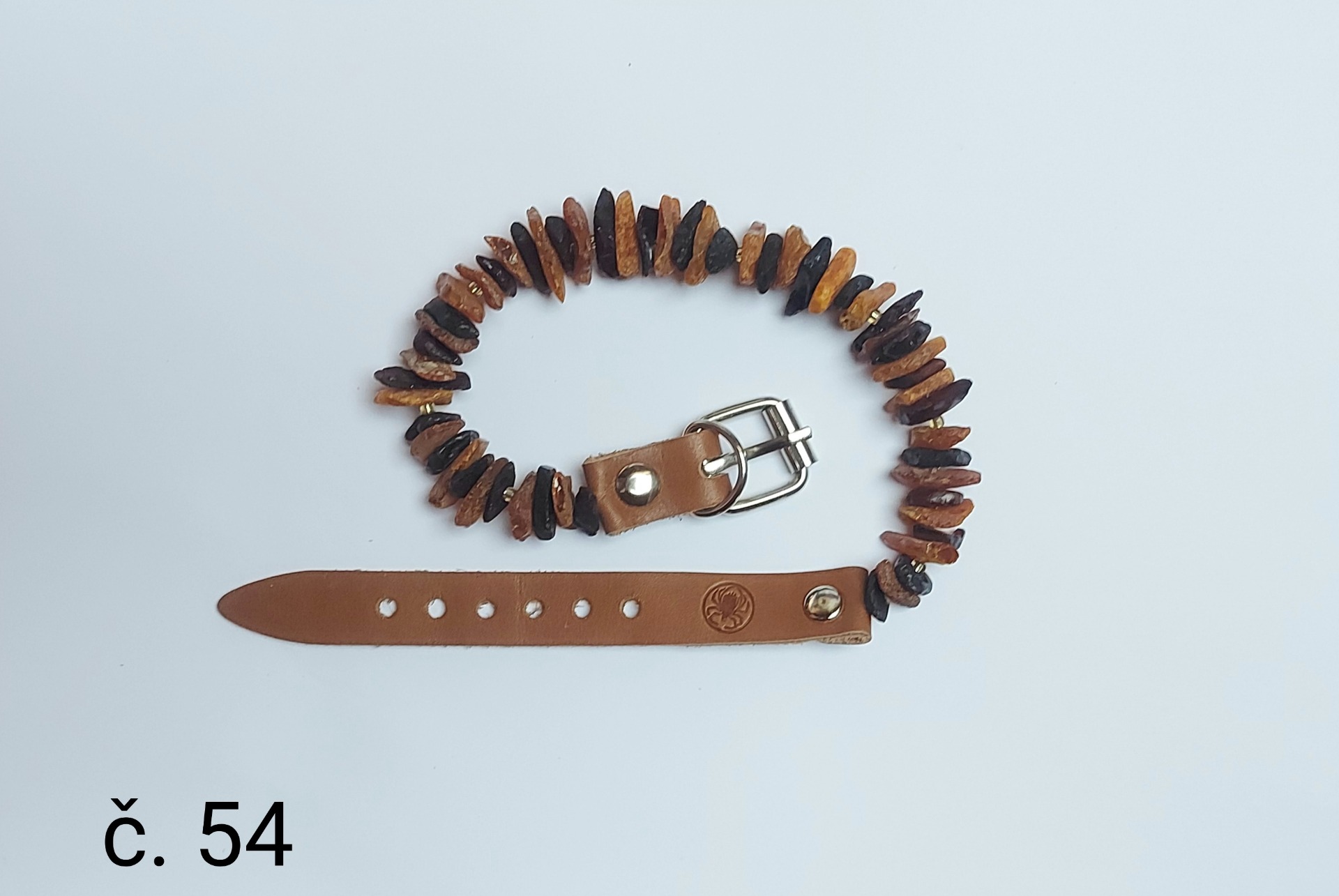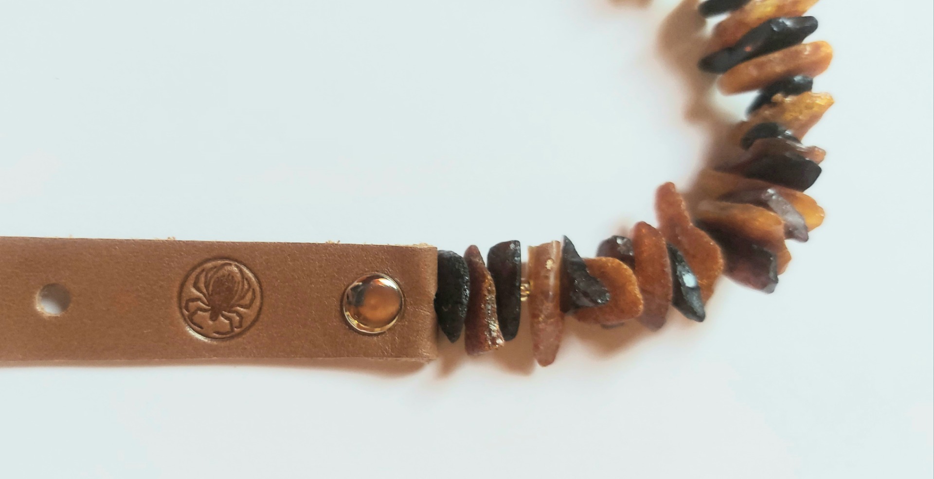 Obojek s minerály baltský jantar s koženým páskem a nerezovou přezkou