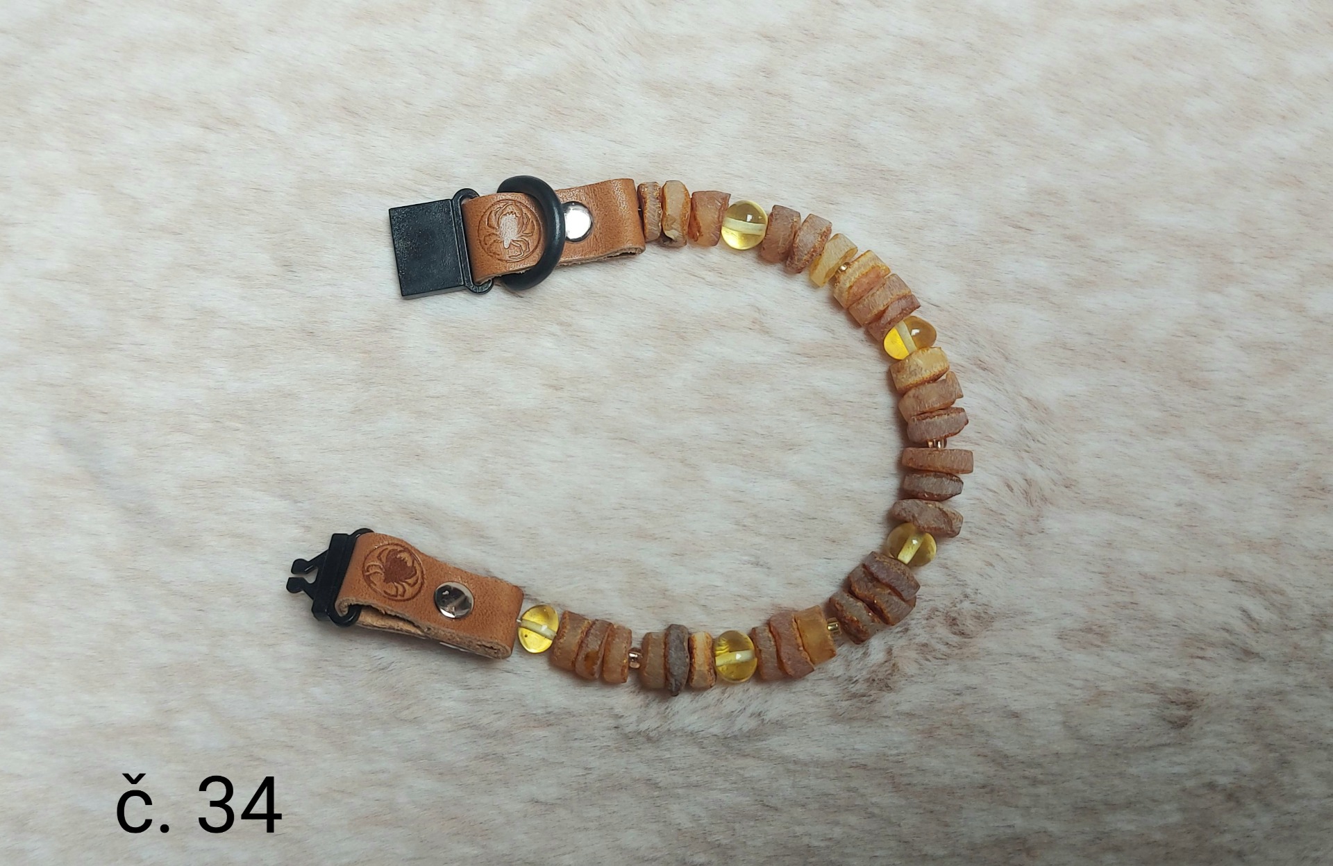Materiál: přírodní minerál baltský jantar, přírodní kůže, rychlozapínací TPR spona