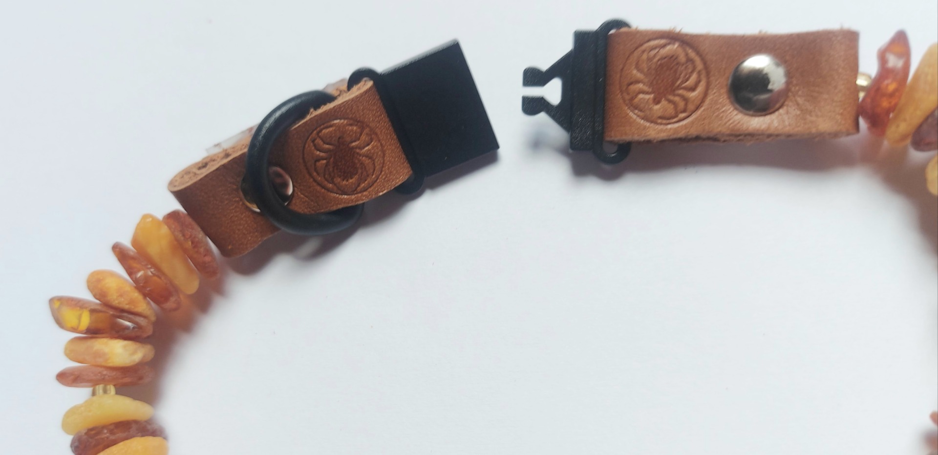 Materiál: přírodní minerál baltský jantar, přírodní kůže, rychlozapínací TPR spona