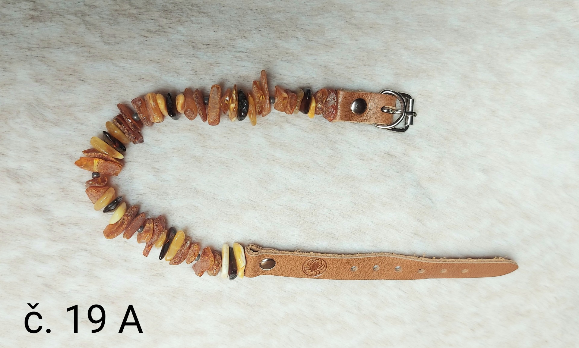 Obojek s minerály baltský jantar s koženým páskem a nerezovou přezkou