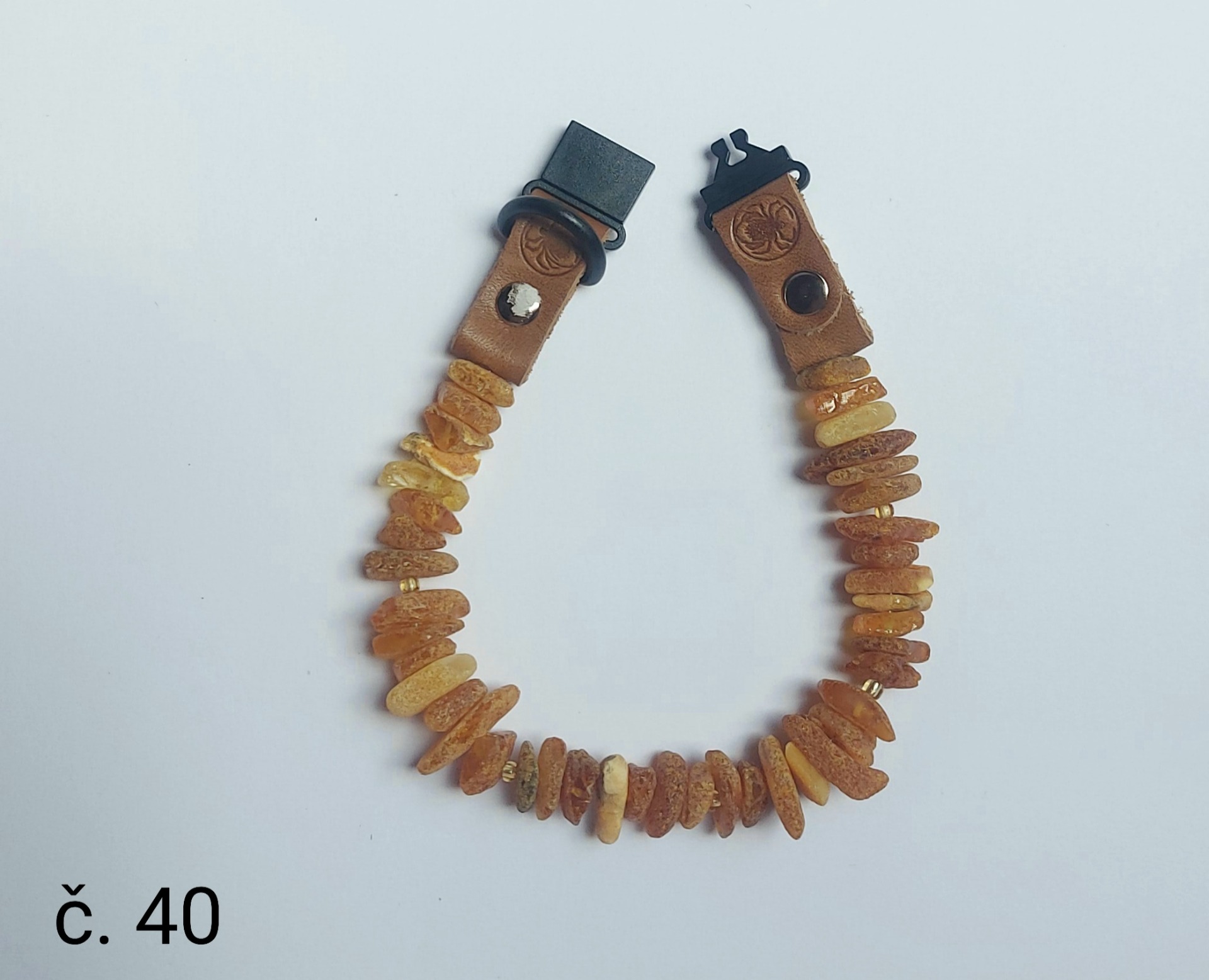 Materiál: přírodní minerál baltský jantar, přírodní kůže, rychlozapínací TPR spona