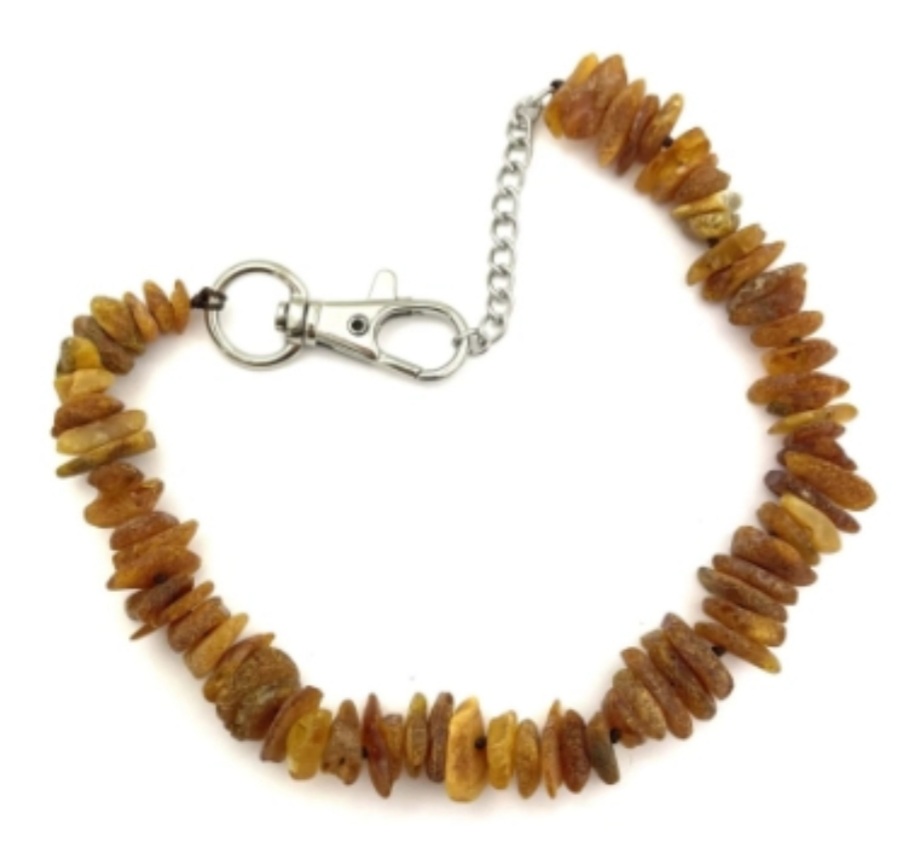 Antiparazitní PŘÍRODNÍ jantarový obojek z PRAVÉHO baltského surového neleštěného jantaru spolehlivě účinkuje proti klíšťatům, blechám a jiným parazitům