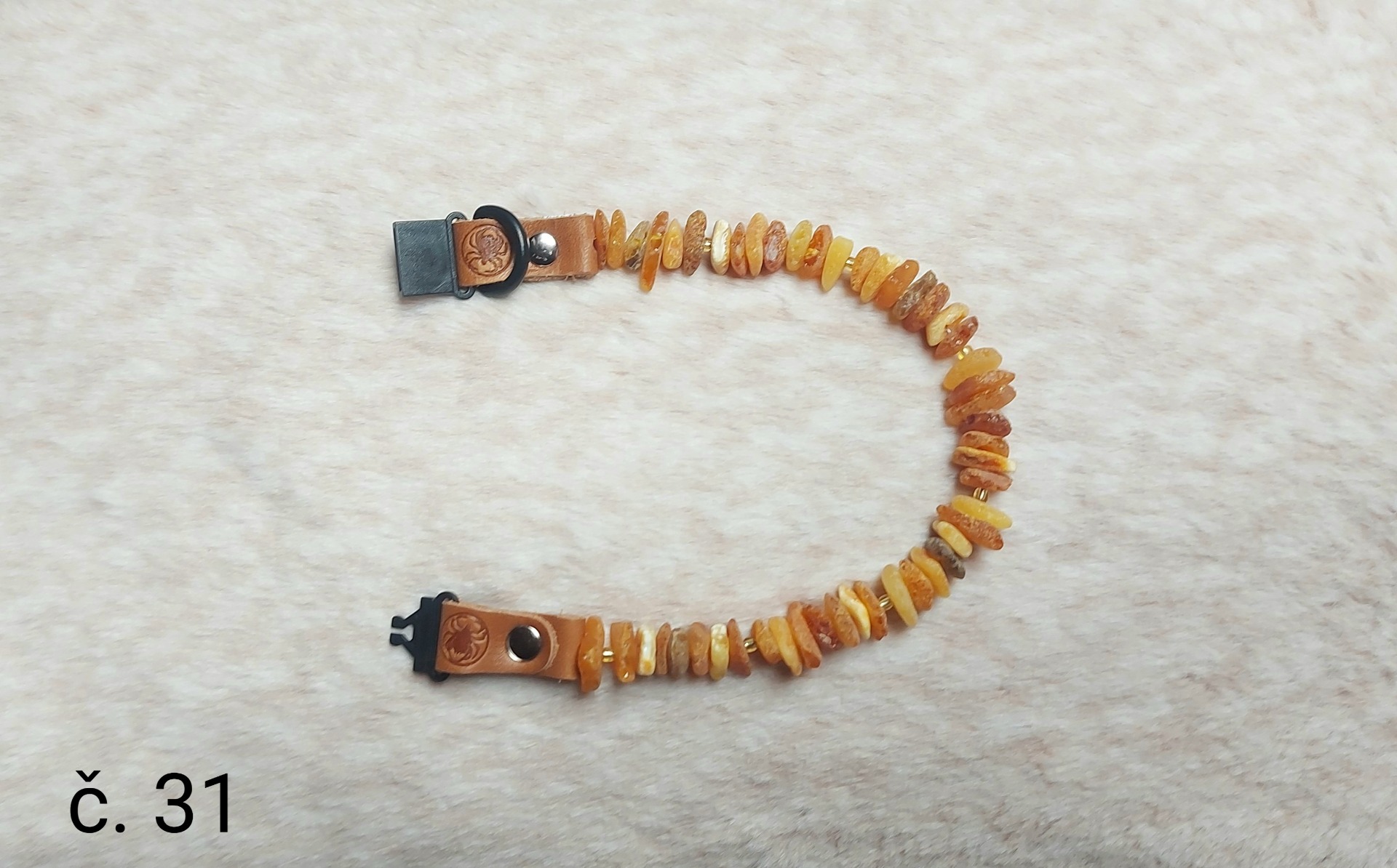 Materiál: přírodní minerál baltský jantar, přírodní kůže, rychlozapínací TPR spona