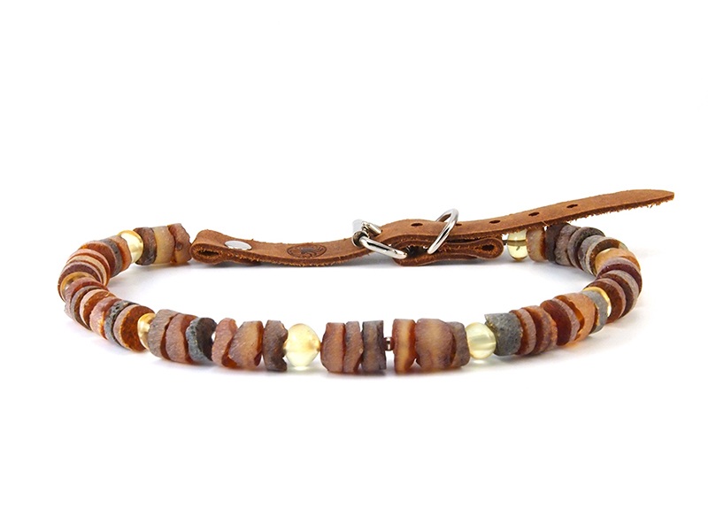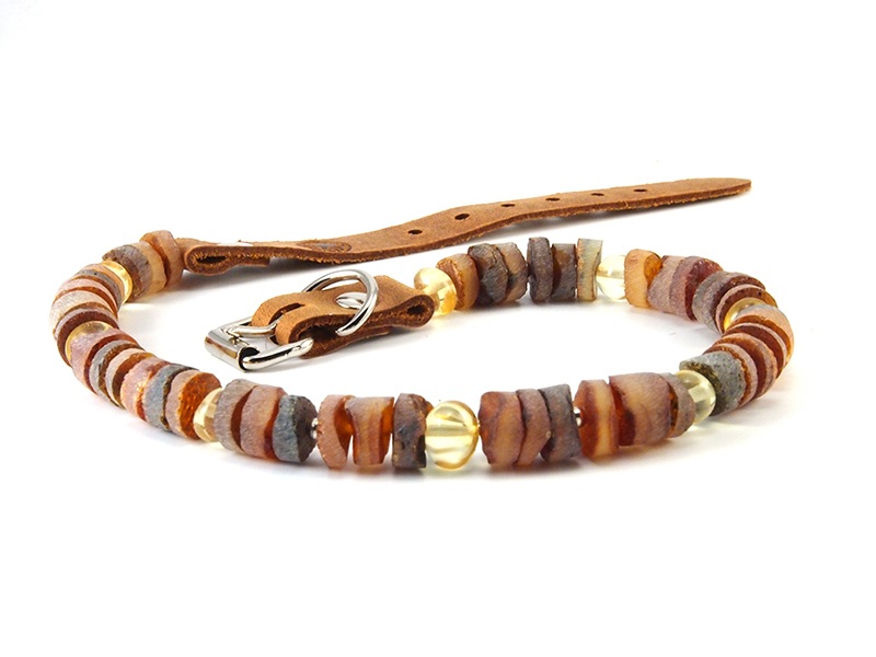 Obojek s minerály baltský jantar s koženým páskem a nerezovou přezkou