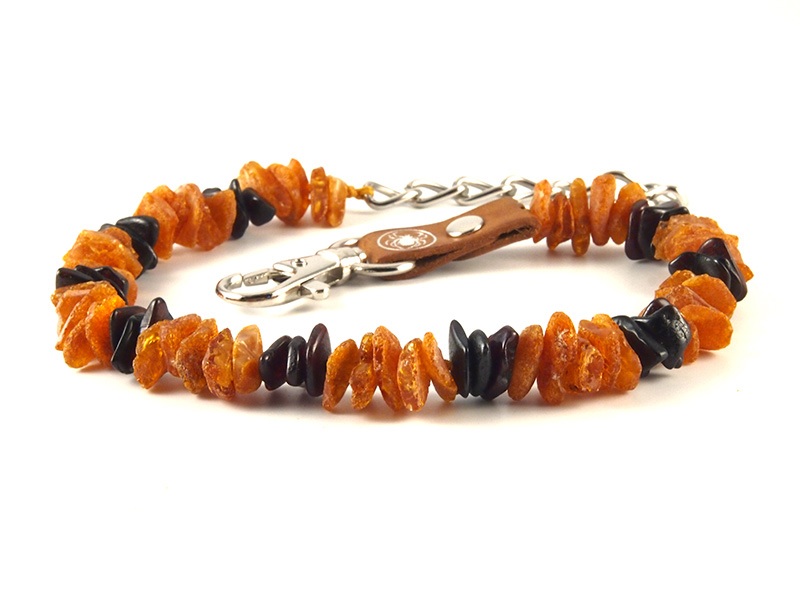 Obsah balení: 1 ks jantarový obojek s koženou přezkou, nerezovým řetízkem a karabinou, český návod k použití