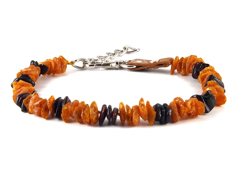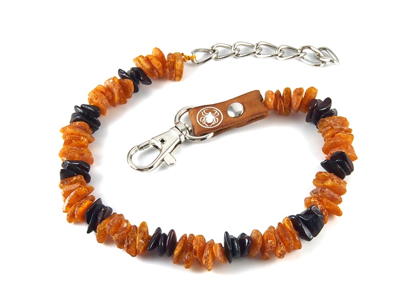 Materiál: přírodní minerál baltský jantar, přírodní kůže, nerezová karabina a řetízek